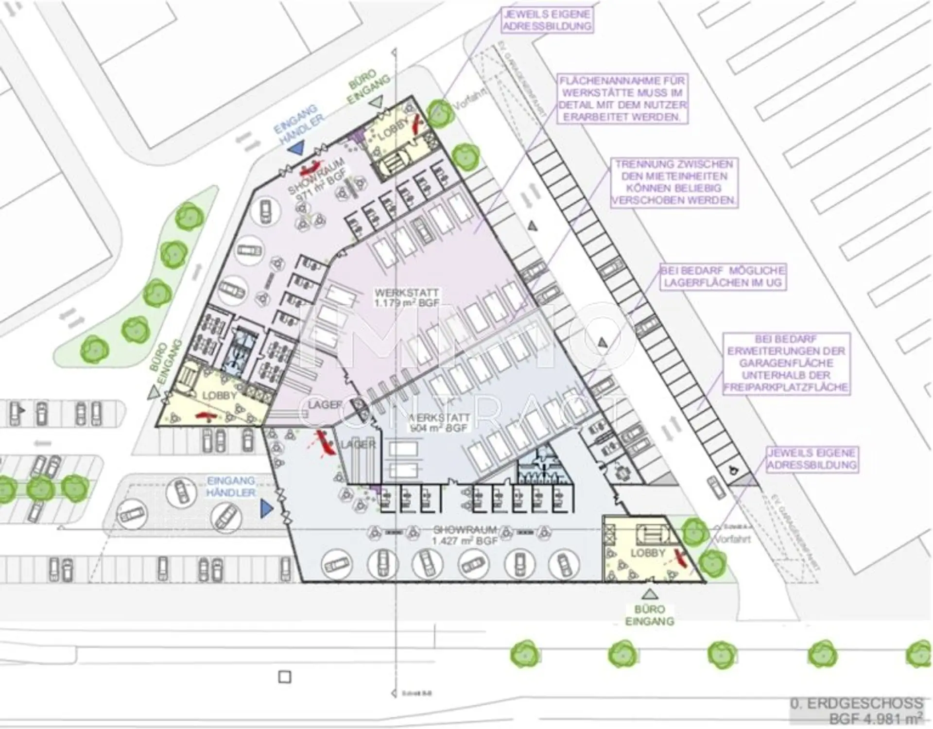 Hochgaragenplätze optional um € 95/m2 netto zzgl. BK anmietbar