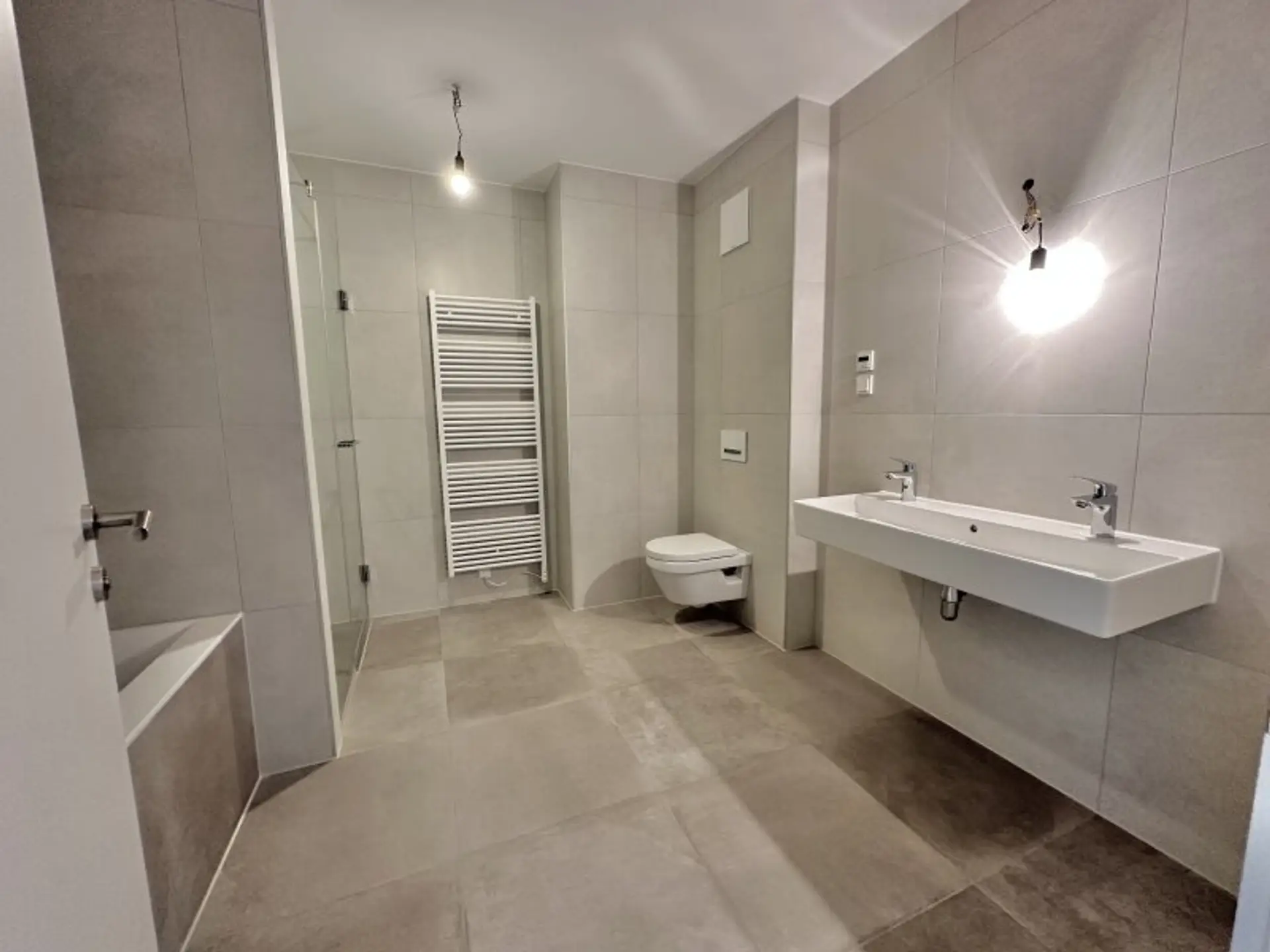 -) großes Badezimmer mit Badewanne, Walking Shower, Doppelwaschtisch und Toilette (ca. 9,5m2)
