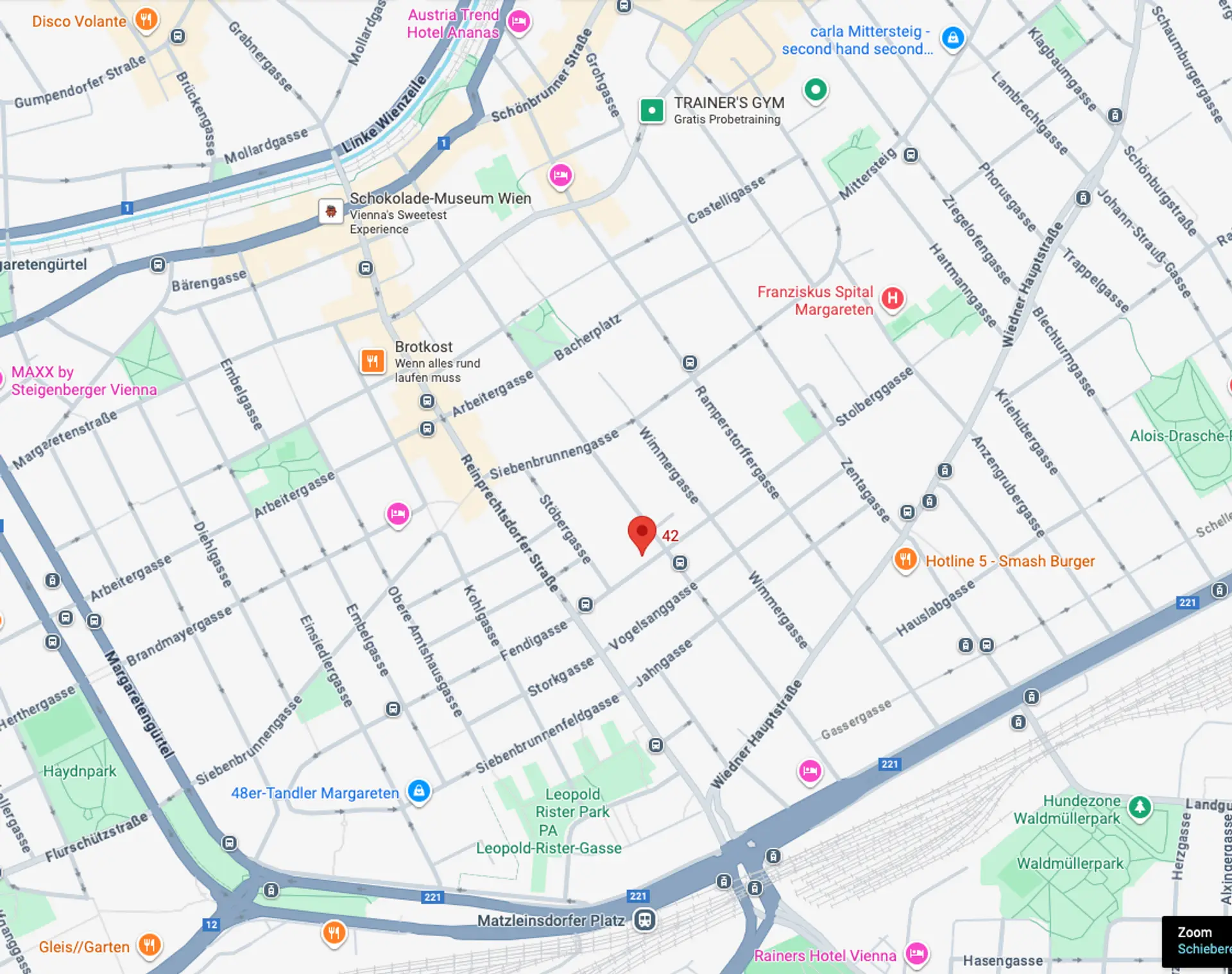 + Top Öffi-Anbindung: 1, 62, Badner Bahn, 12A, 13A, 14A, U4 Pilgramgasse