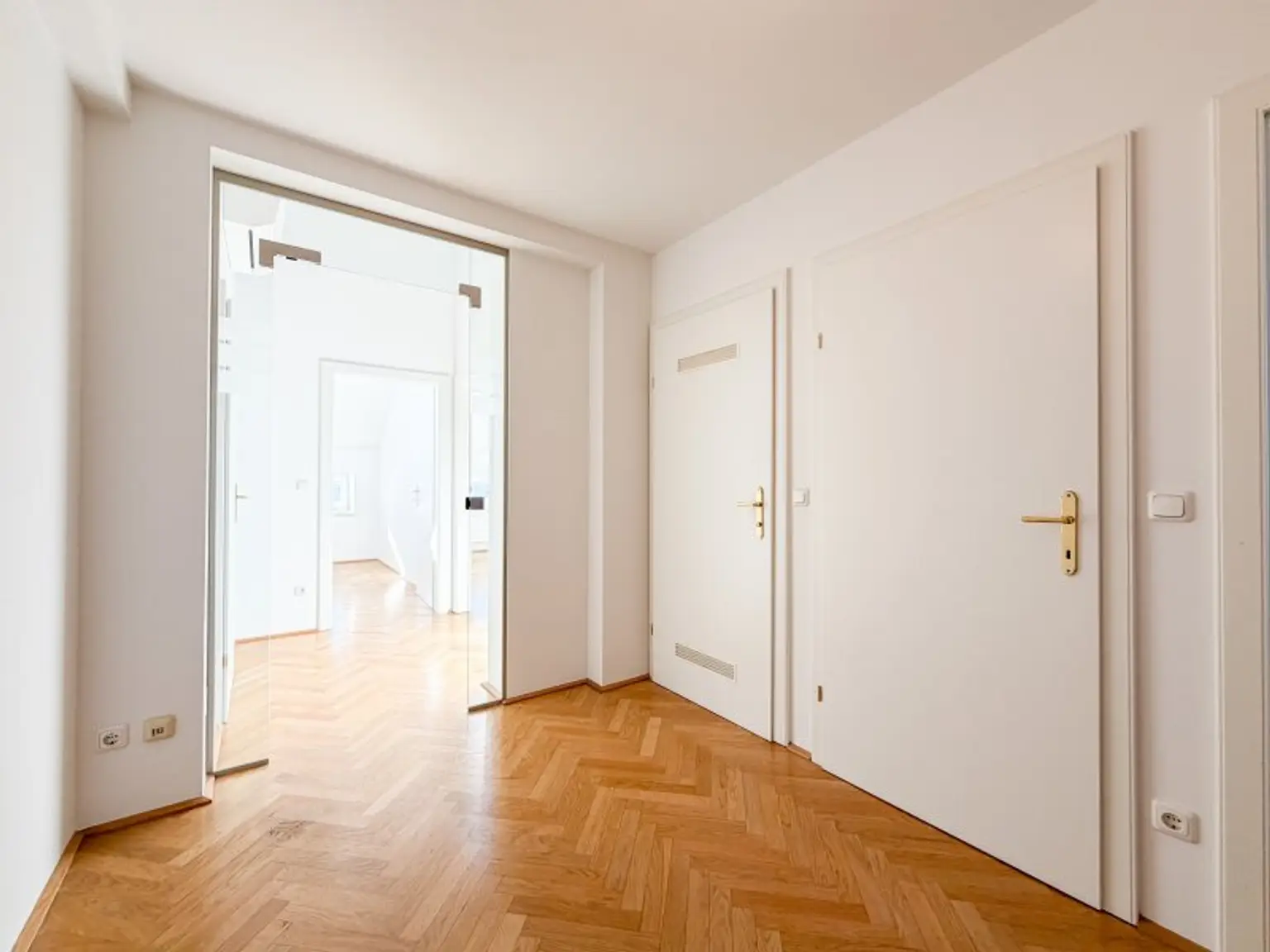 * Hochwertiger Fischgrätparkettboden