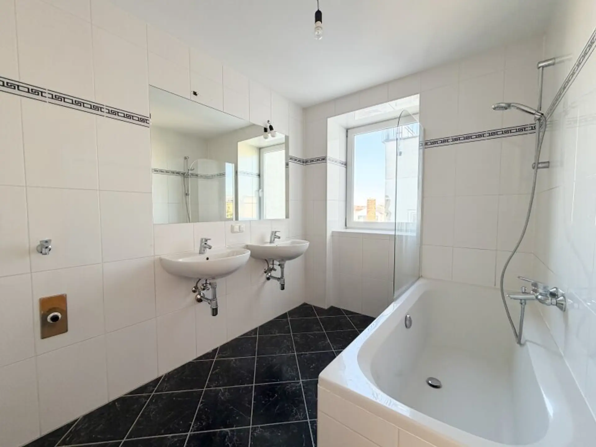 * Badezimmer mit Fenster, Doppelwaschbecken, Badewanne & Waschmaschinenanschluss