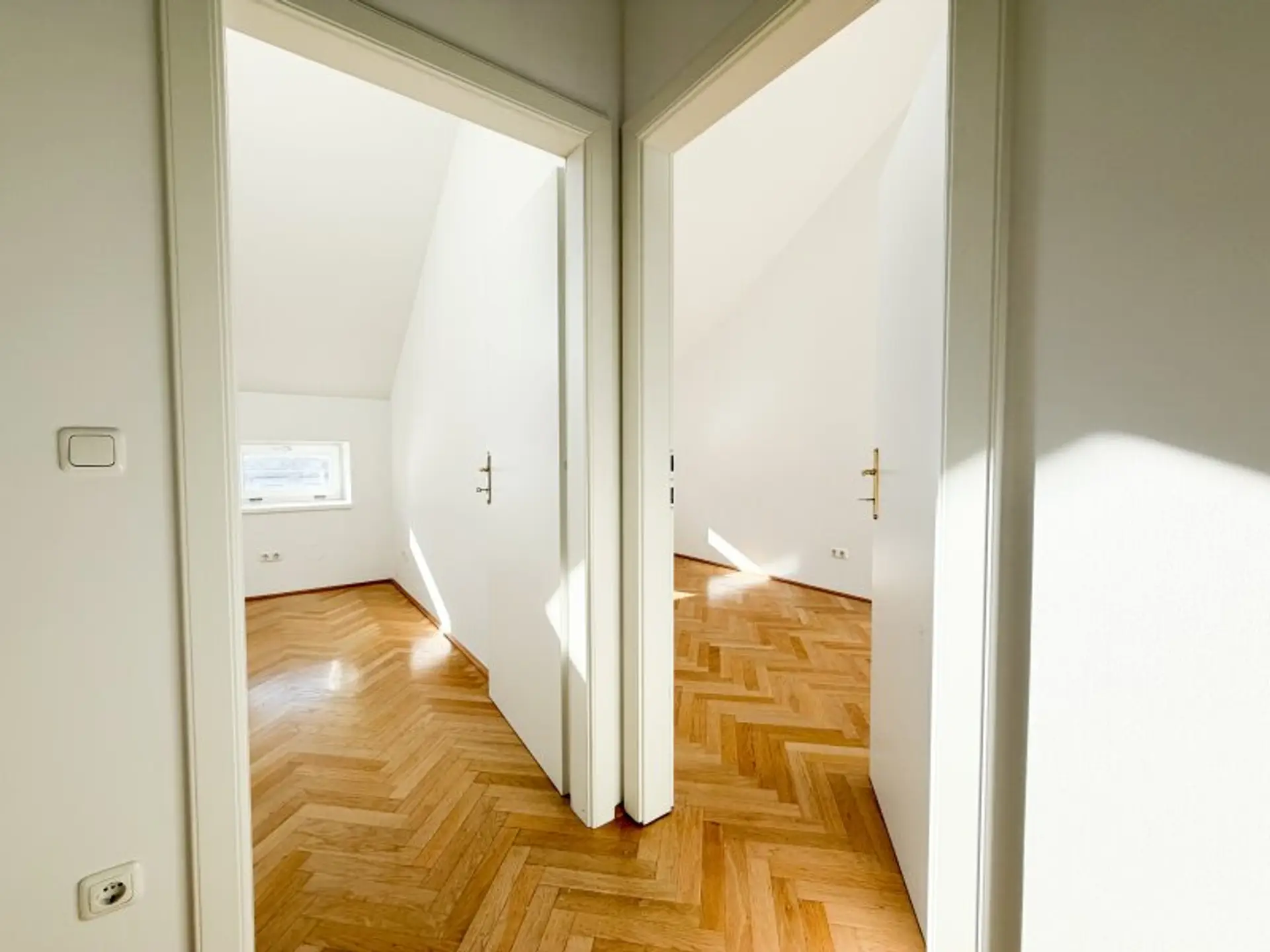 Zum Verkauf steht eine besondere 3-Zimmer-Eigentumswohnung im ausgebauten Dachgeschoß eines prachtvollen Hauses aus dem Jahr 1905. Errichtet von Alois und Agnes Ranninger – woran eine Marmortafel im Eingangsbereich erinnert – erzählt dieses Gebäude bis heute seine Geschichte. Der Dachgeschoßausbau wurde etwa 2009 realisiert und schafft ein Wohngefühl, das Großzügigkeit, Helligkeit und Charakter auf einzigartige Weise vereint.