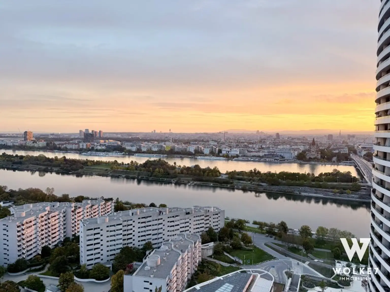 Stellen Sie sich vor, Sie genießen Ihren Morgenkaffee auf der eigenen Loggia im 24. Stock und blicken über die Skyline von Wien bis zu den Wiener Hausbergen. Diese lichtdurchflutete 2-Zimmer-Eigentumswohnung kombiniert modernen Wohnkomfort mit einem Panorama-Ausblick, der jeden Tag aufs Neue begeistert. Die Wohnung ist ca. 67 m² (inkl. Loggia mit ca. 7 m²) groß und besticht durch einen optimalen Grundriss: ein offener Wohn-Essbereich mit maßgefertigter Einbauküche, ein gemütliches Schlafzimmer mit viel Stauraum und ein elegantes Bad. Dank der großen Fensterfronten und südseitigen Ausrichtung genießen Sie hervorragendes Licht und einen traumhaften Fernblick.