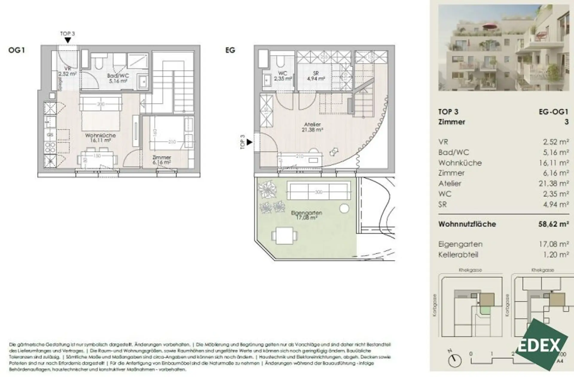 * TOP 3: ca. 58,62 m² 2,5-Zimmer-Maisonette-Wohnung mit 17,08 m² Garten
