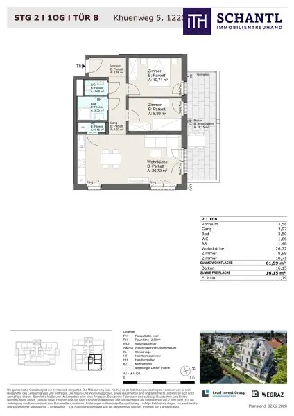 Wohnfläche: ca. 61,59m² + Terrasse: 16,15m² + Kellerabteil: ca. 1,79m²