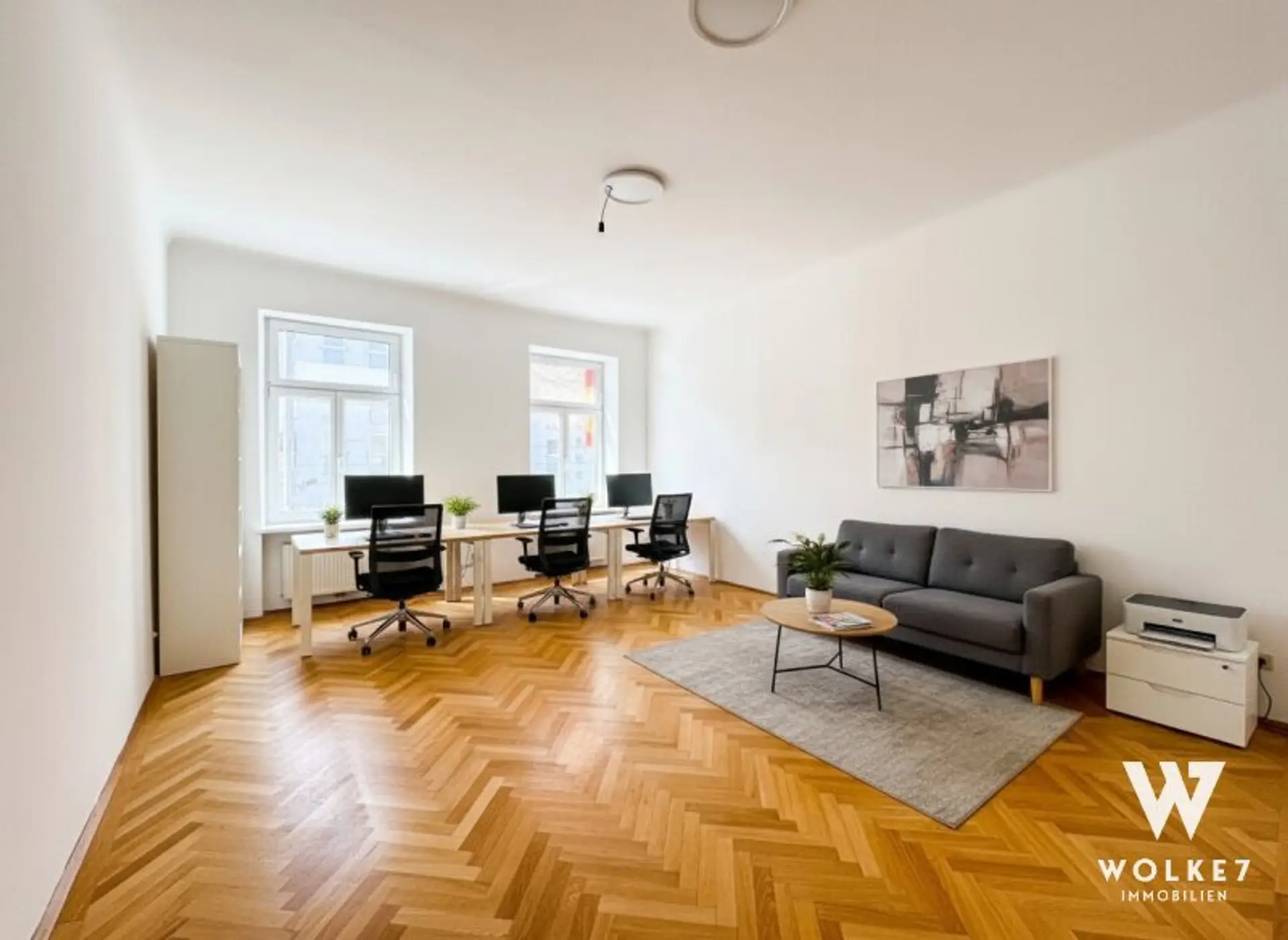 Wir bieten ein sonniges Büro in absoluter Bestlage zur Vermietung an. Die Einheit überzeugt durch einen großzügigen Vorraum, eine große Küche, vier gut geschnittene Zimmer sowie zwei separate WC-Anlagen. Die Räumlichkeiten wurden vor Kurzem umfassend generalsaniert und präsentieren sich in einem ausgezeichneten Zustand. Hochwertige Doppelverbundfenster, edle Eichenparkettböden sowie frisch gestrichene, weiße Wände schaffen eine moderne und zugleich angenehme Arbeitsatmosphäre. Auch das Gebäude selbst befindet sich in einem sehr gepflegten Gesamtzustand.