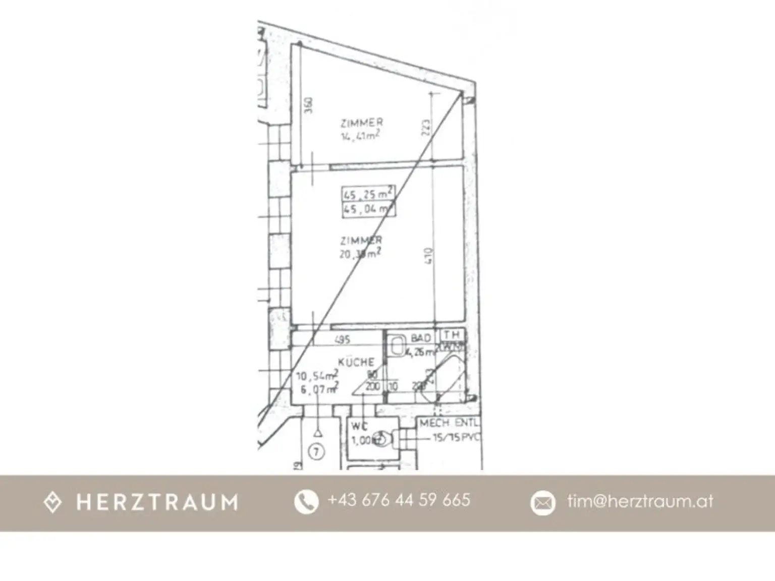 Kaufpreis: € 105.000,– (ca. € 2.328,–/m²)