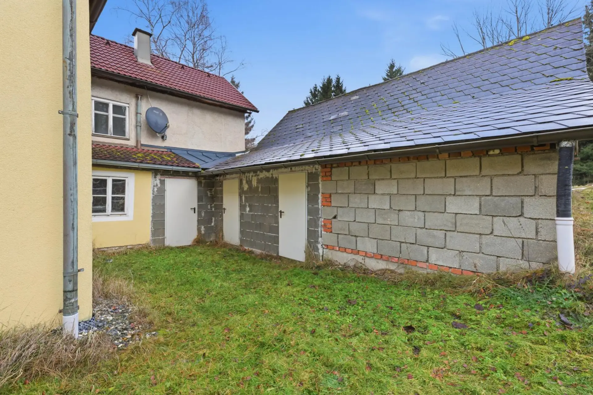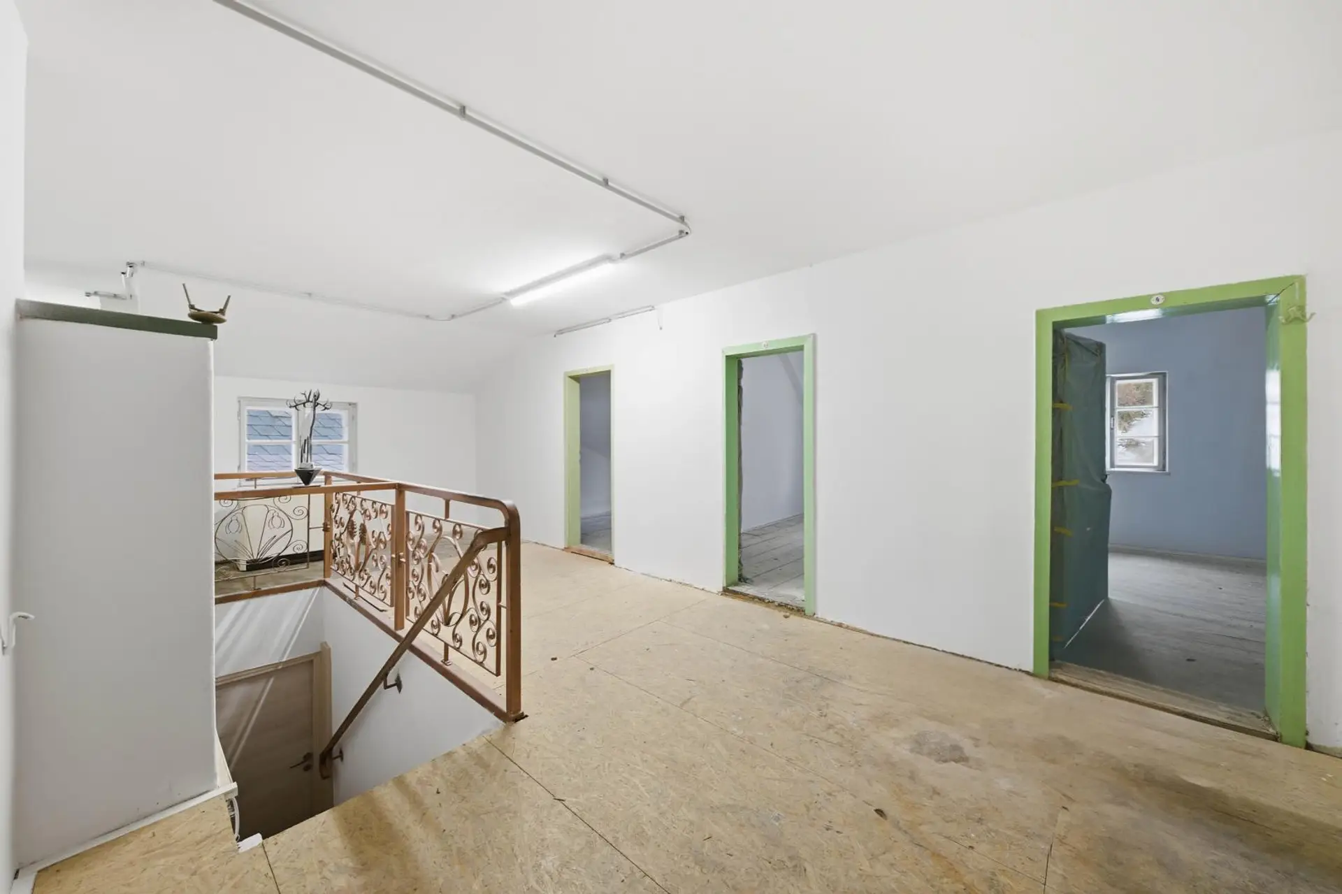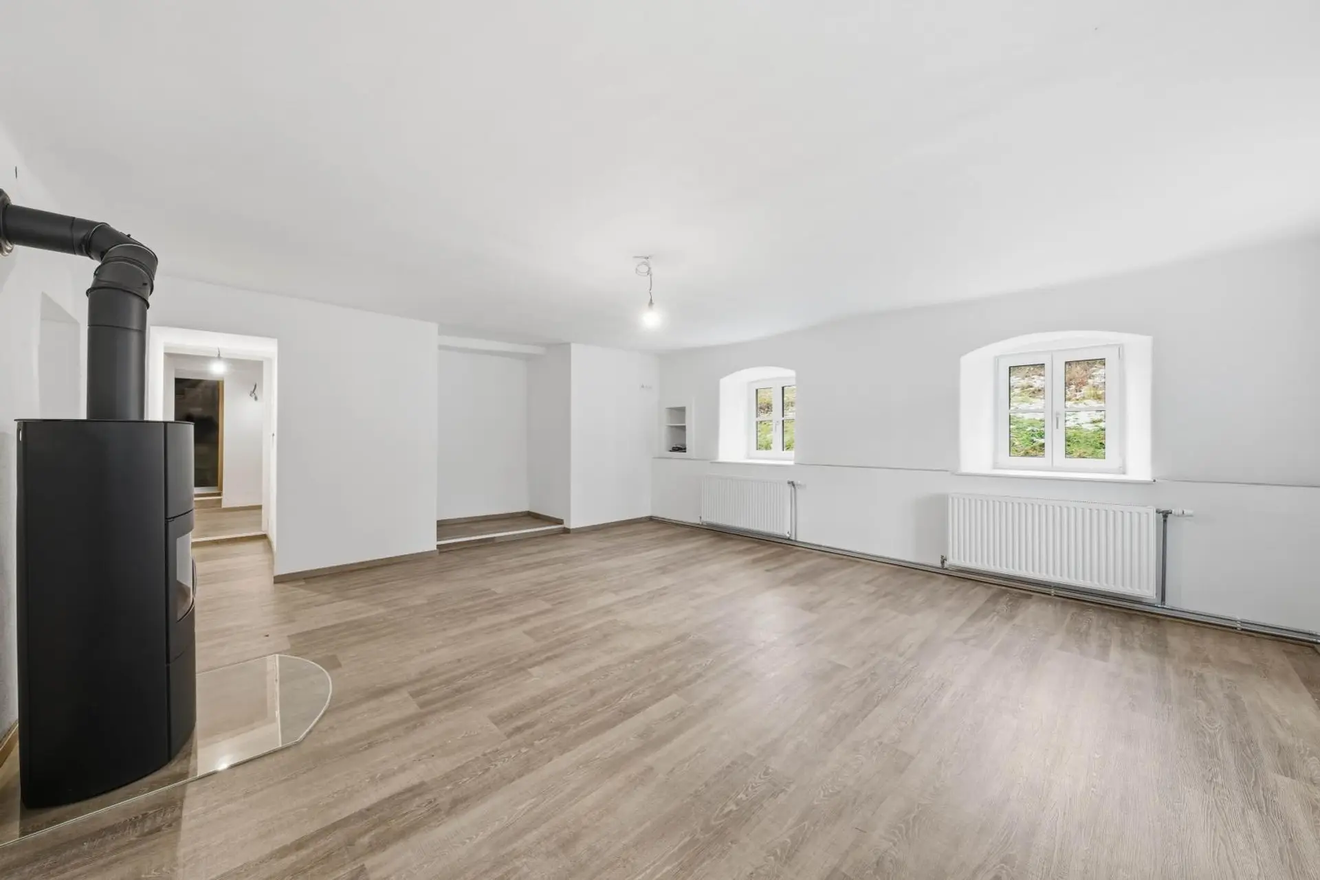 Das Erdgeschoss wurde (nach einem Kabelbrand) erst 2025 saniert, im Obergeschoss steht noch eine Modernisierung an. Das Objekt wird mittels Luftwärmepumpe/Radiatoren beheizt. Auch die Elektrik im Erdgeschoss wurde erneuert. Die Fenster im Erdgeschoss sind dreifach verglast. Der Innenbereich im Erdgeschoss ist nach der Renovierung ein Erstbezug.