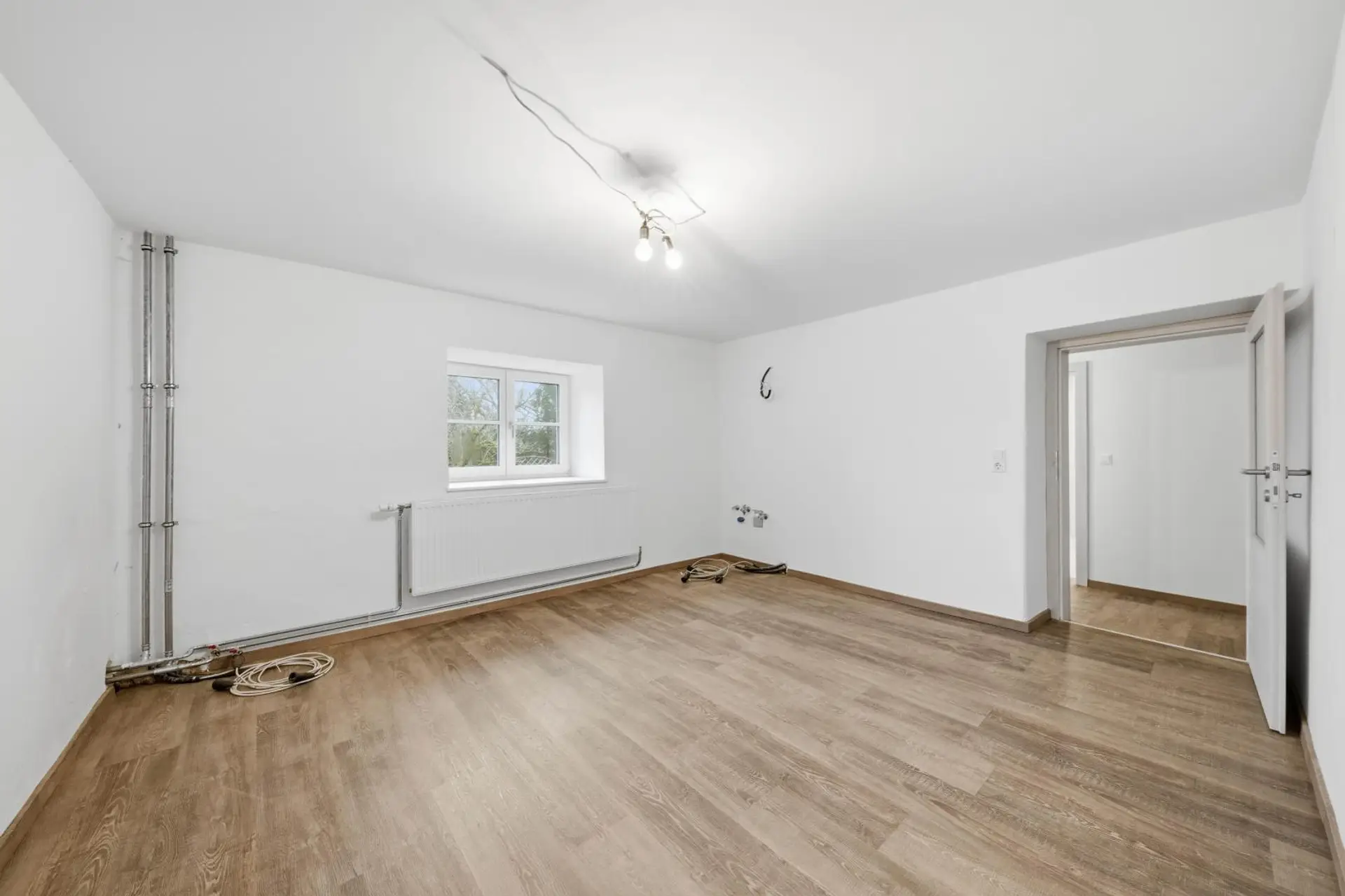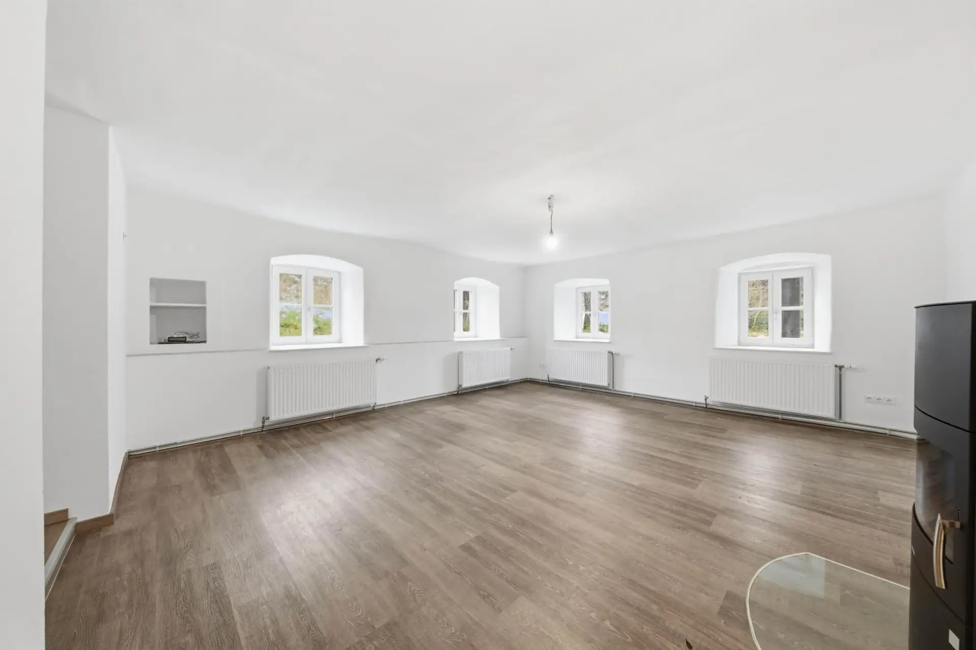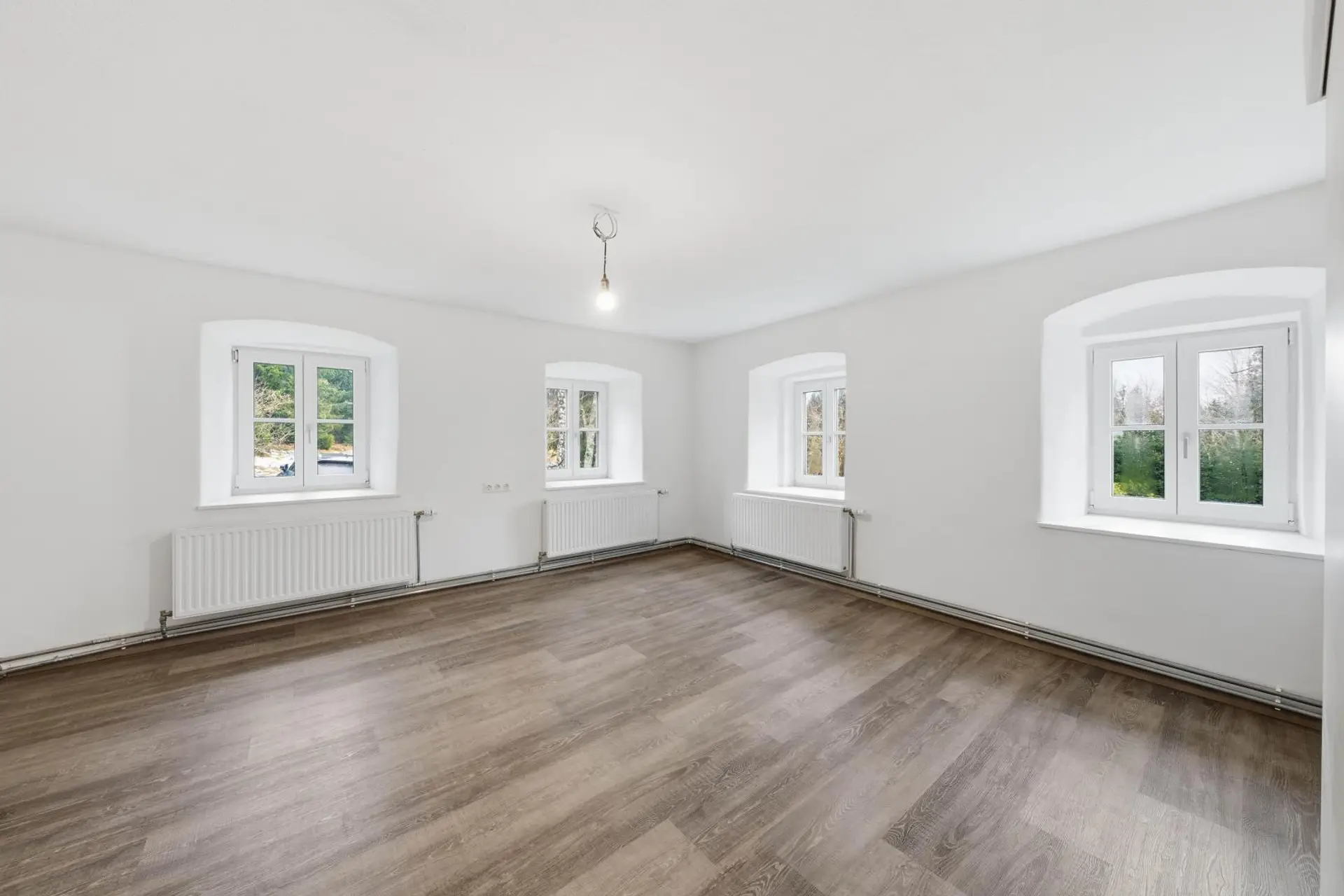 Das Erdgeschoss wurde (nach einem Kabelbrand) erst 2025 saniert, im Obergeschoss steht noch eine Modernisierung an. Das Objekt wird mittels Luftwärmepumpe/Radiatoren beheizt. Auch die Elektrik im Erdgeschoss wurde erneuert. Die Fenster im Erdgeschoss sind dreifach verglast. Der Innenbereich im Erdgeschoss ist nach der Renovierung ein Erstbezug.