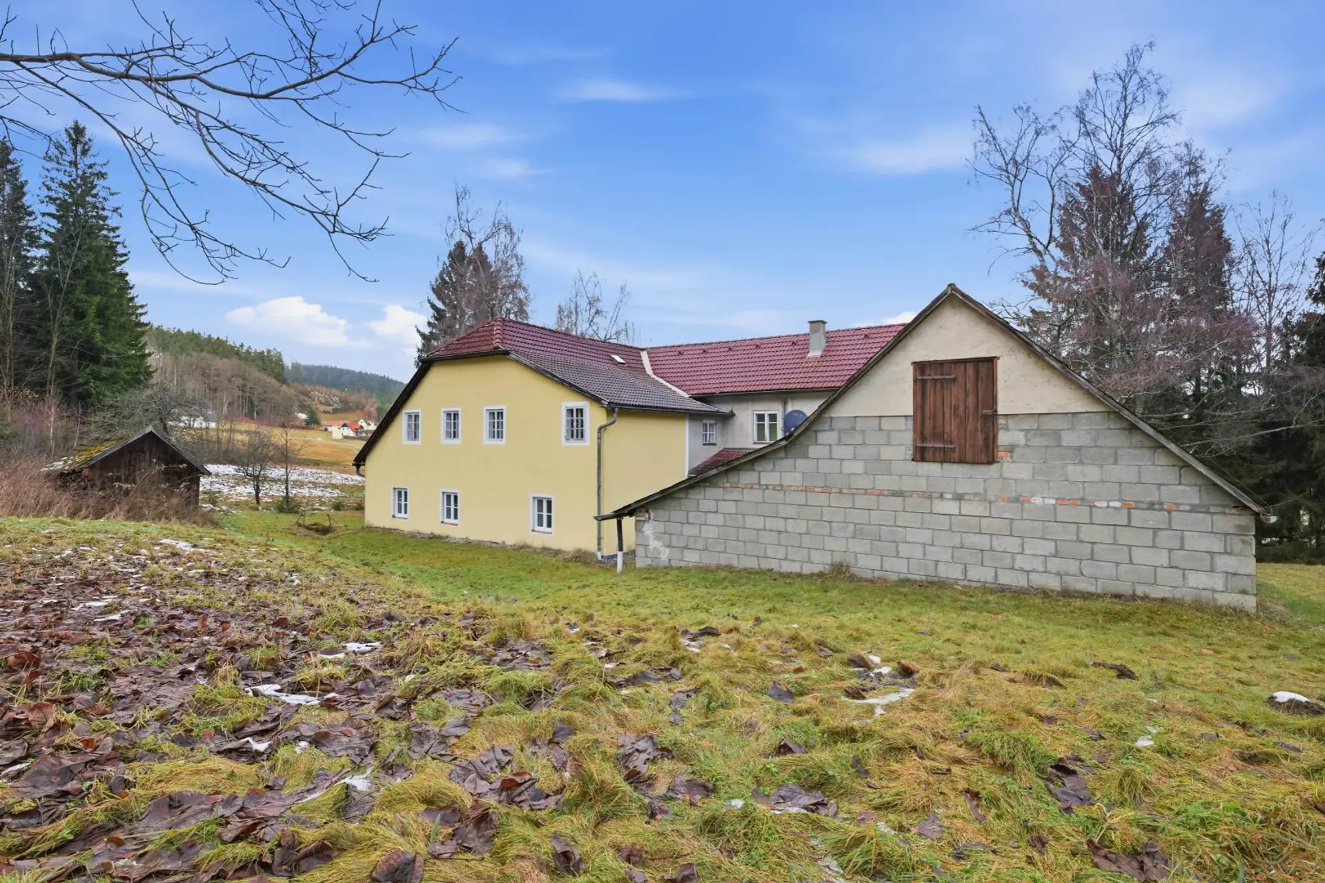 In ruhiger sowie unberührter Natur gelegen, präsentiert sich diese Liegenschaft als seltene Gelegenheit. Das Anwesen befindet sich auf einem beeindruckenden Grundstück mit ca. 26.758 m² Fläche (Geb Widmung-erhaltenswerte Gebäude im Grünland )