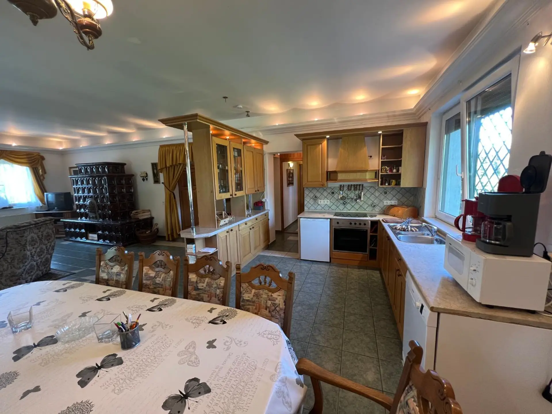 Das Haus mit einer Wohnfläche von 193 m² wurde im Jahr 1999 gebaut und bietet sehr viel Platz für die ganze Familie oder auch zur Vermietung für Feriengäste. Im Erdgeschoß befinden sich eine offene Küche und das Wohnzimmer, für deren behagliche Wärme im Winter ein Kachelofen sorgt. Auch gibt es im Erdgeschoß ein Zimmer, welches als Gästezimmer oder Büro genutzt werden könnte. Weiters gibt es 2 Badezimmer und 2 WCs, je eines im Erdgeschoß und eines im Obergeschoß. Das Obergeschoß verfügt weiters über 5 Zimmer, teilweise mit Balkon und Blick auf den eigenen See.