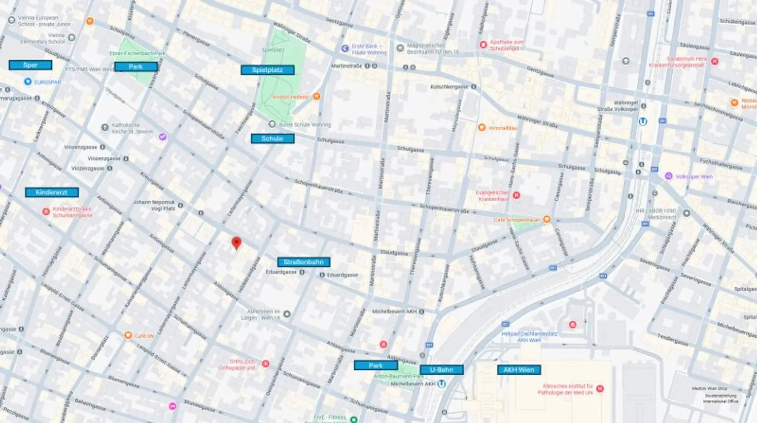 Wohnjuwel in bester Wiener Lage fußläufig zum AKH Wien - diese charmante Etagen-Wohnung in zentraler Lage im 18 Wiener Gemeindebezirk, bietet durch eine ausgezeichnete öffentliche Anbindung und Infrastruktur, Einkaufsmöglichkeiten und Schulen in unmittelbarer Umgebung. Das Mehrfamilienhaus liegt in der Nähe zahlreicher Parks. Durch die Nähe zum AKH Wien und zur Medizinische Universität Wien bietet die Wohnung auch jungen Leuten und Studenten eine tolle Wohnmöglichkeit.