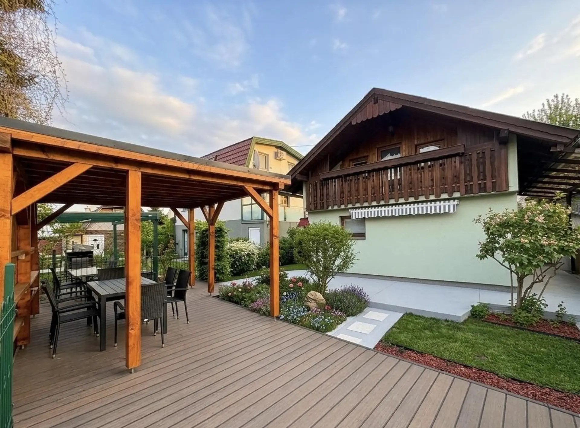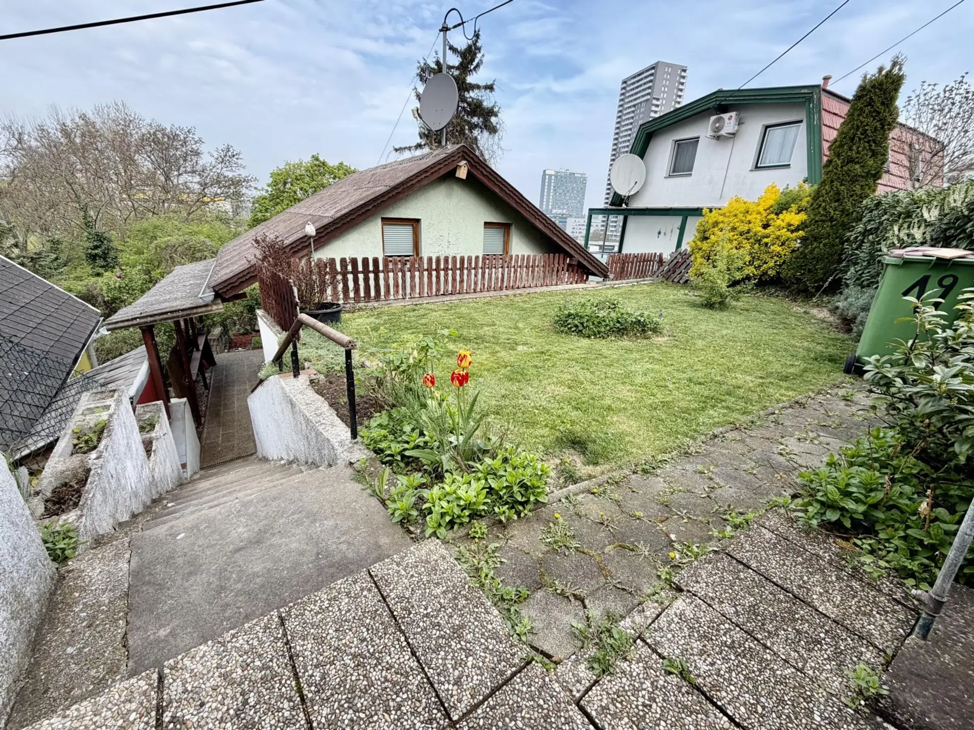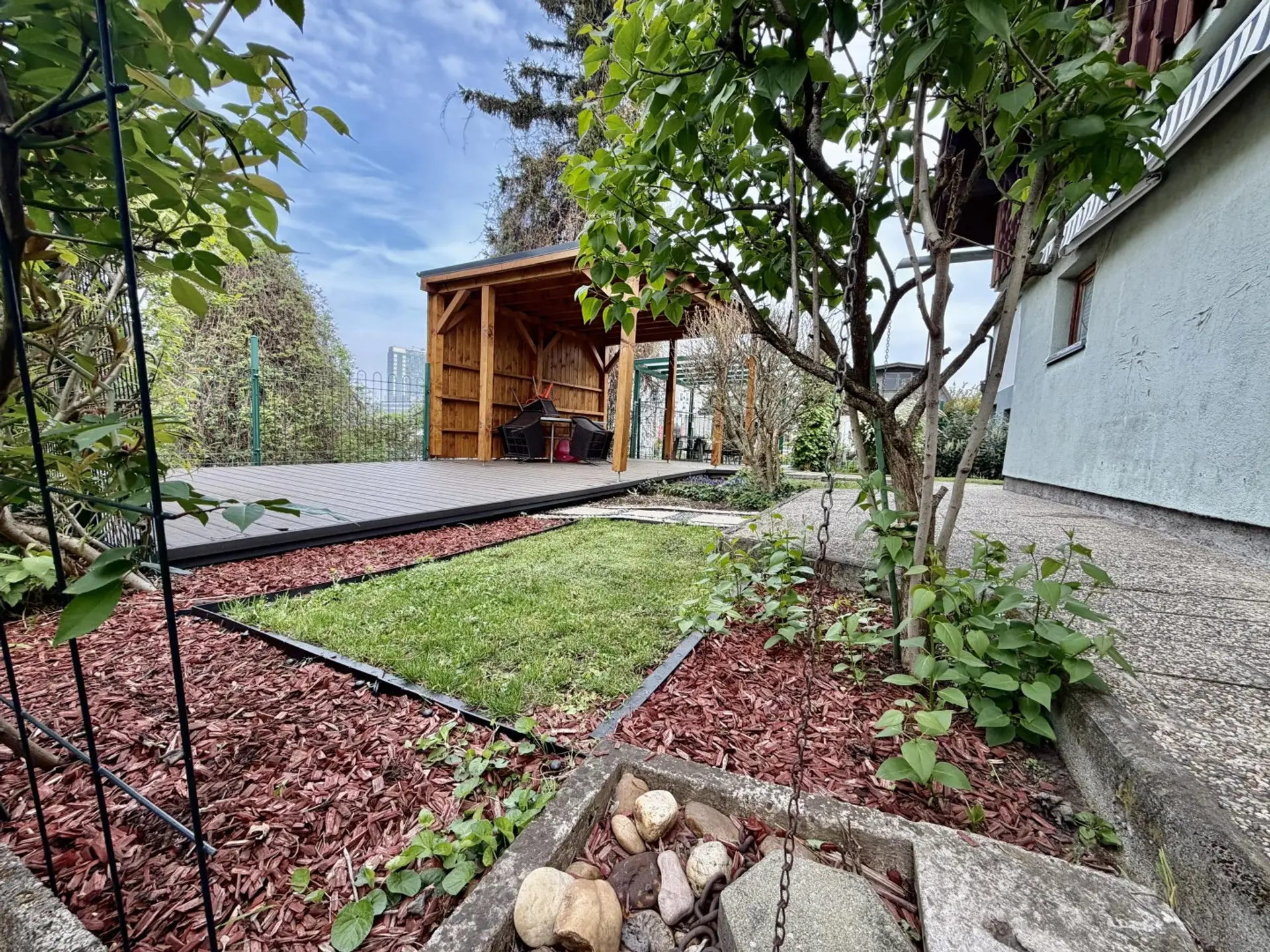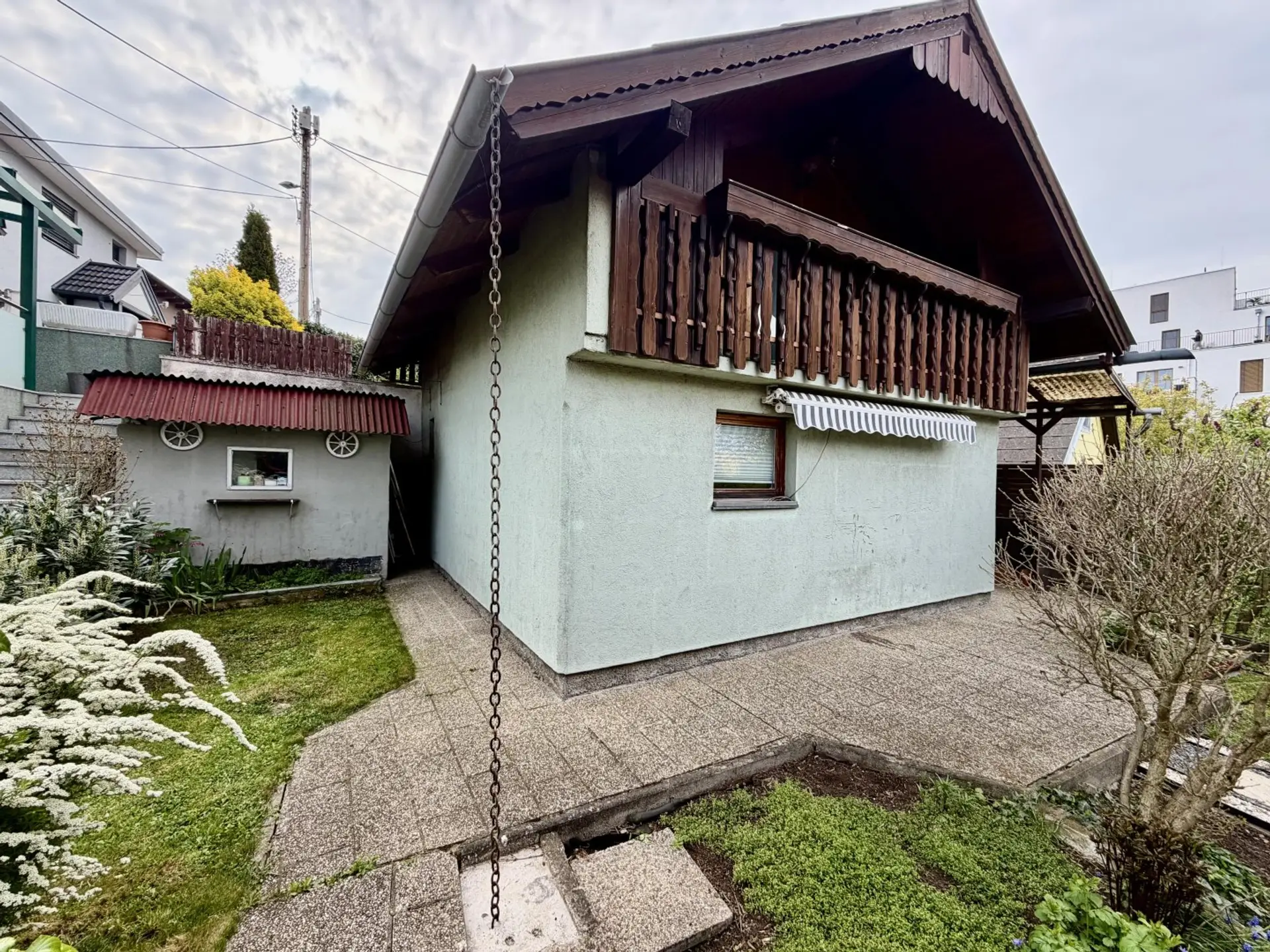 Das Haus befindet sich in der etablierten Kleingartensiedlung Fischeralm, umgeben von gepflegten Gärten. Die Lage zeichnet sich durch ihre familiäre Atmosphäre und die Nähe zur Natur aus, während die städtische Infrastruktur dennoch gut erreichbar bleibt. Einkaufsmöglichkeiten für den täglichen Bedarf und öffentliche Verkehrsmittel befinden sich in der näheren Umgebung.