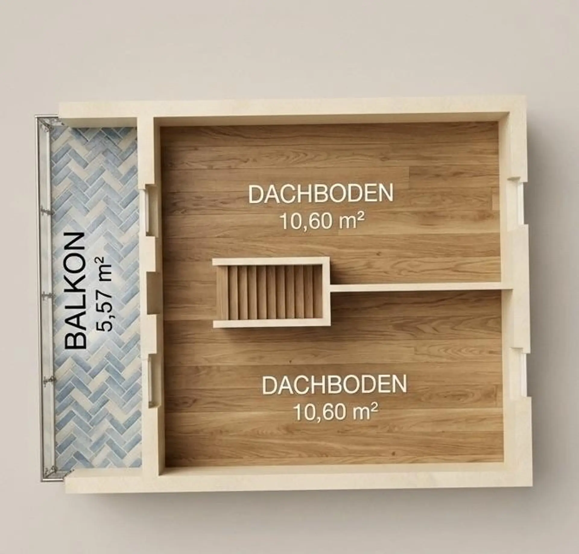Über den Treppenaufgang gelangen Sie in das Obergeschoss, welches über zwei weitere Zimmer verfügt.