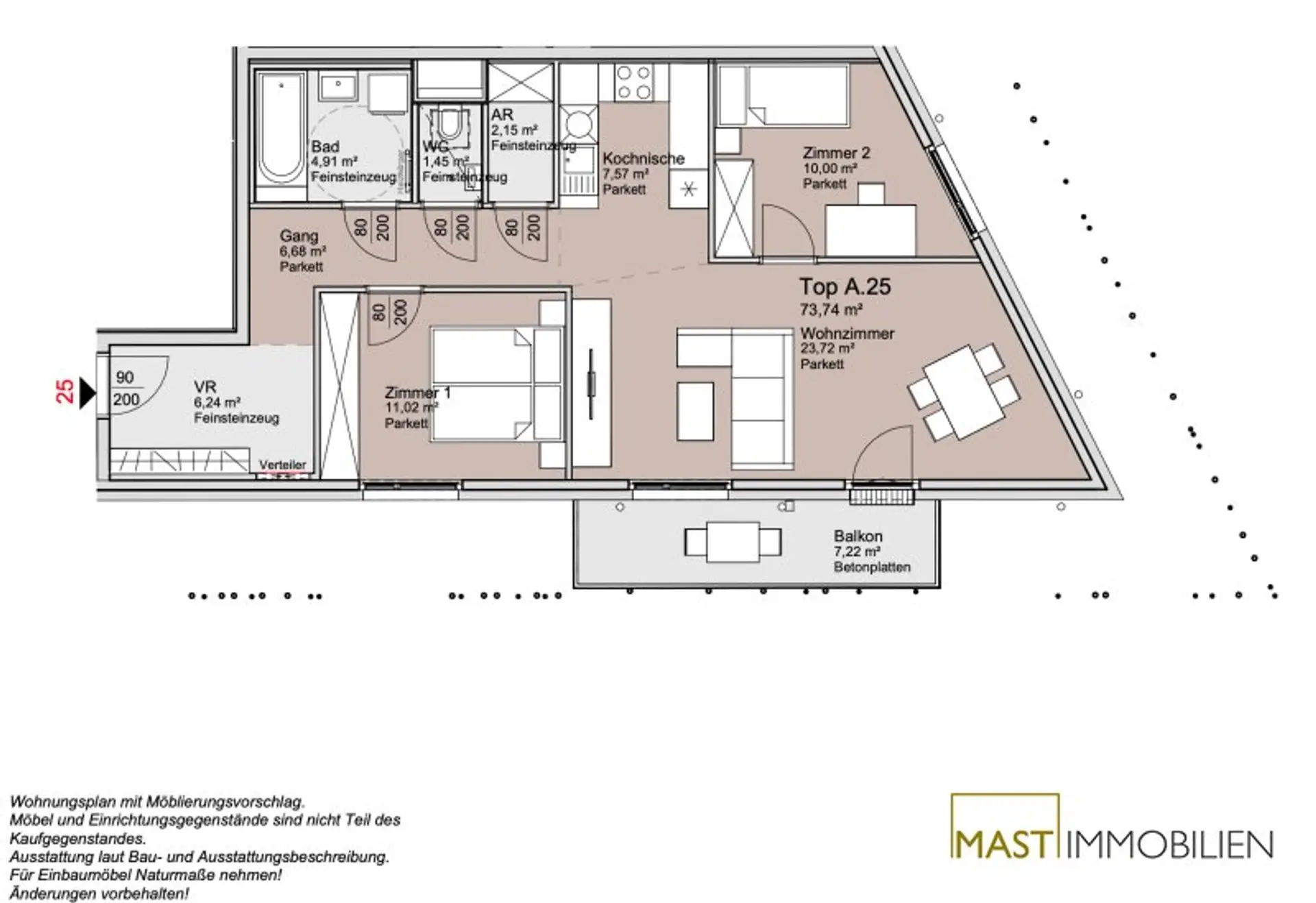 Alle verfügbaren Wohnungen finden Sie auf unserer Homepage unter www.mast-immo.at [https://www.mast-immo.at/]. Um Ihre Suche zu erleichtern, steht Ihnen auf unserer Projektseite www.anderschanze25.at [https://www.anderschanze25.at/] ein Wohnungsnavigator zur Verfügung, der Ihnen hilft, sich einen Überblick über die Lage der einzelnen Wohnungen innerhalb des Komplexes zu verschaffen.