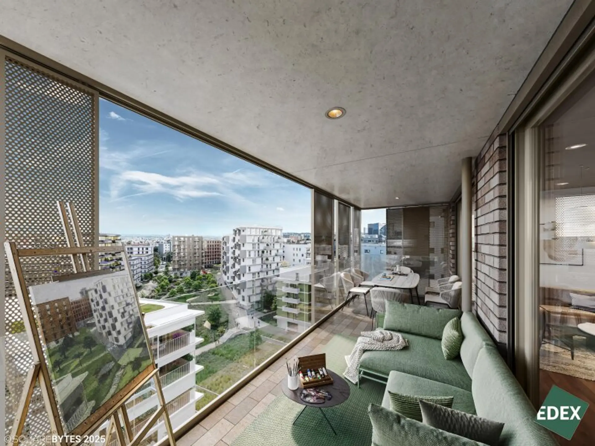 Insgesamt entstehen 143 Eigentumswohnungen mit Wohnflächen zwischen ca. 45m² und 110 m² und 2-5 Zimmern, sowie 2 Geschäftslokale. Zusätzlich werden 10 Hobbyräume zum Erwerb angeboten. Die kompakte Bauform sorgt großteils für zweiseitig belichtete Wohnungen, die jeweils über zwei Freiflächen verfügen: