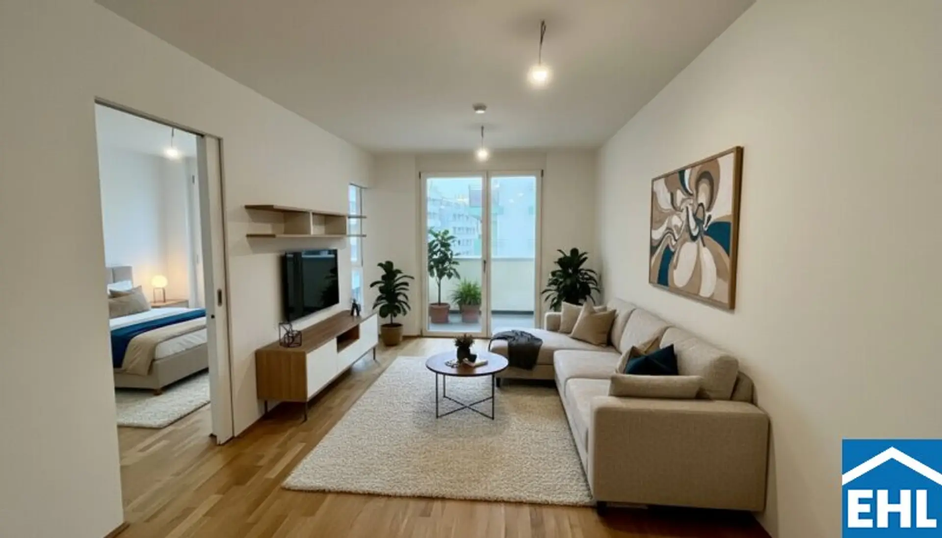Die Bilder wurden teils mittels KI virtuell möbliert um eine bessere Vorstellung der Einrichtungsmöglichkeiten zu vermitteln.