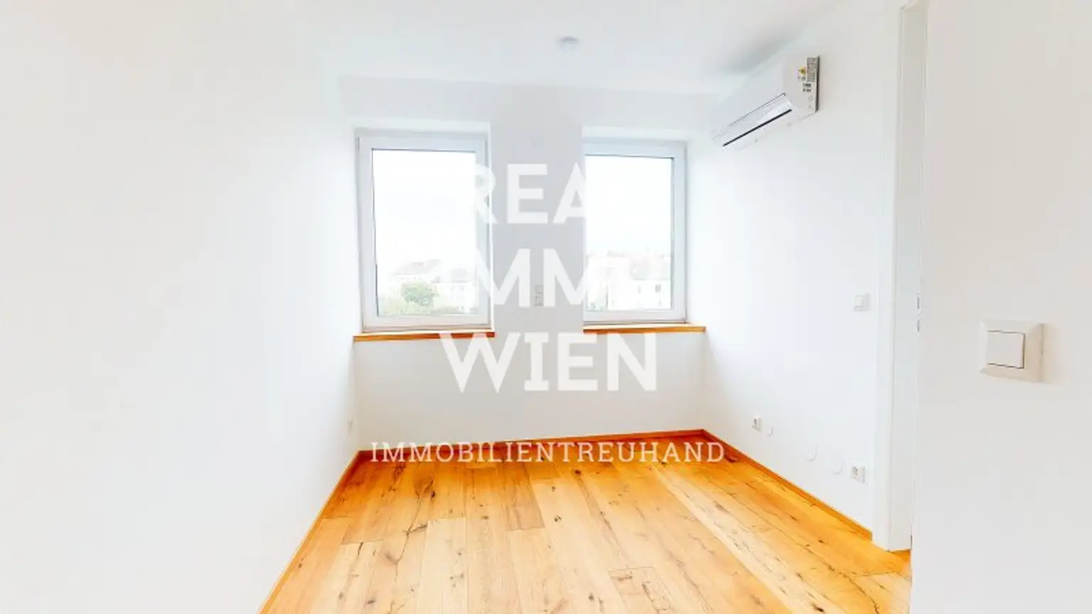 Die Wohnung überzeugt durch eine hochmoderne Einbauküche, qualitativ hochwertige Parkettböden sowie stilvoll verflieste Sanitärräume.