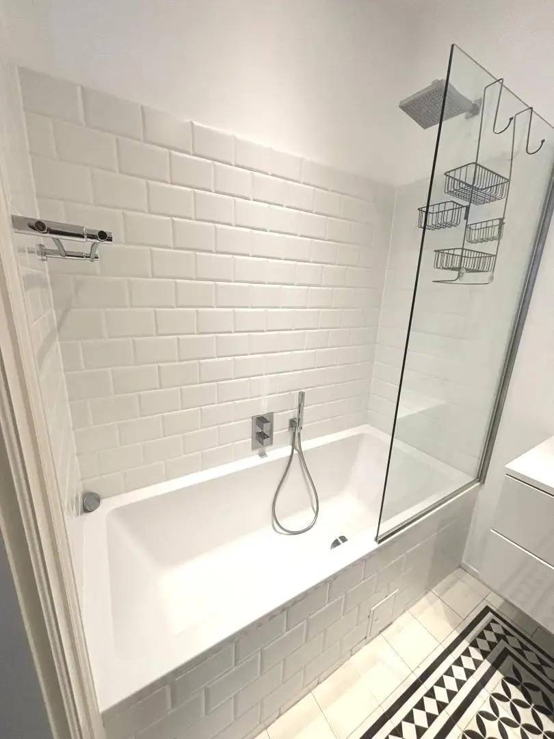 Das Badezimmer mit Badewanne bietet eine kleine Wellness-Oase für entspannte Stunden nach einem langen Tag.