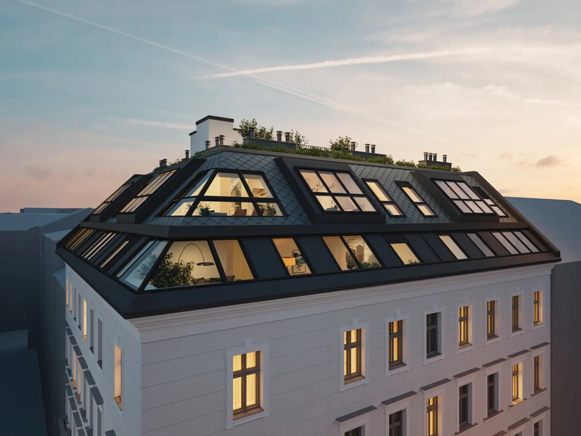 Im Dachgeschoß eines Altbaus gelegen, der bis Ende 2027 hochwertig und umfangreich generalsaniert wird, eröffnet sich hier ein Zuhause für all jene, die Wert auf Lage, Licht und Freiflächen legen.
