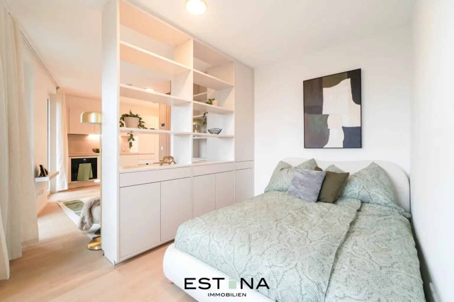- elegante Wohnküche mit optisch abgetrennten Schlafbereich