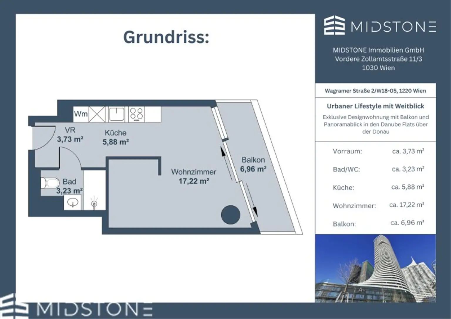 * Lage: 1220 Wien, direkt an der Neuen Donau, ausgezeichnete Verkehrsanbindung