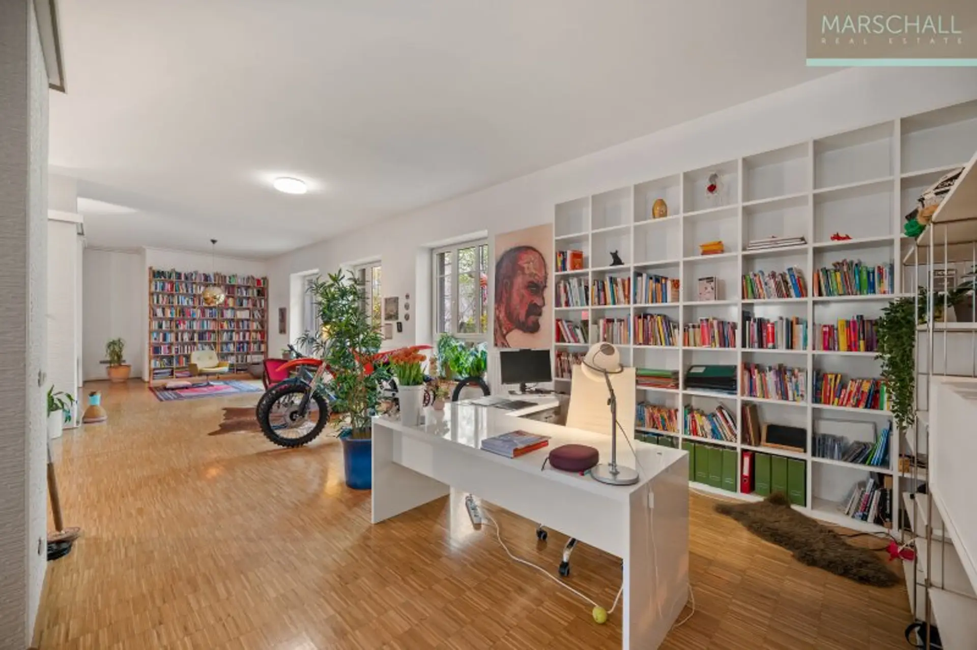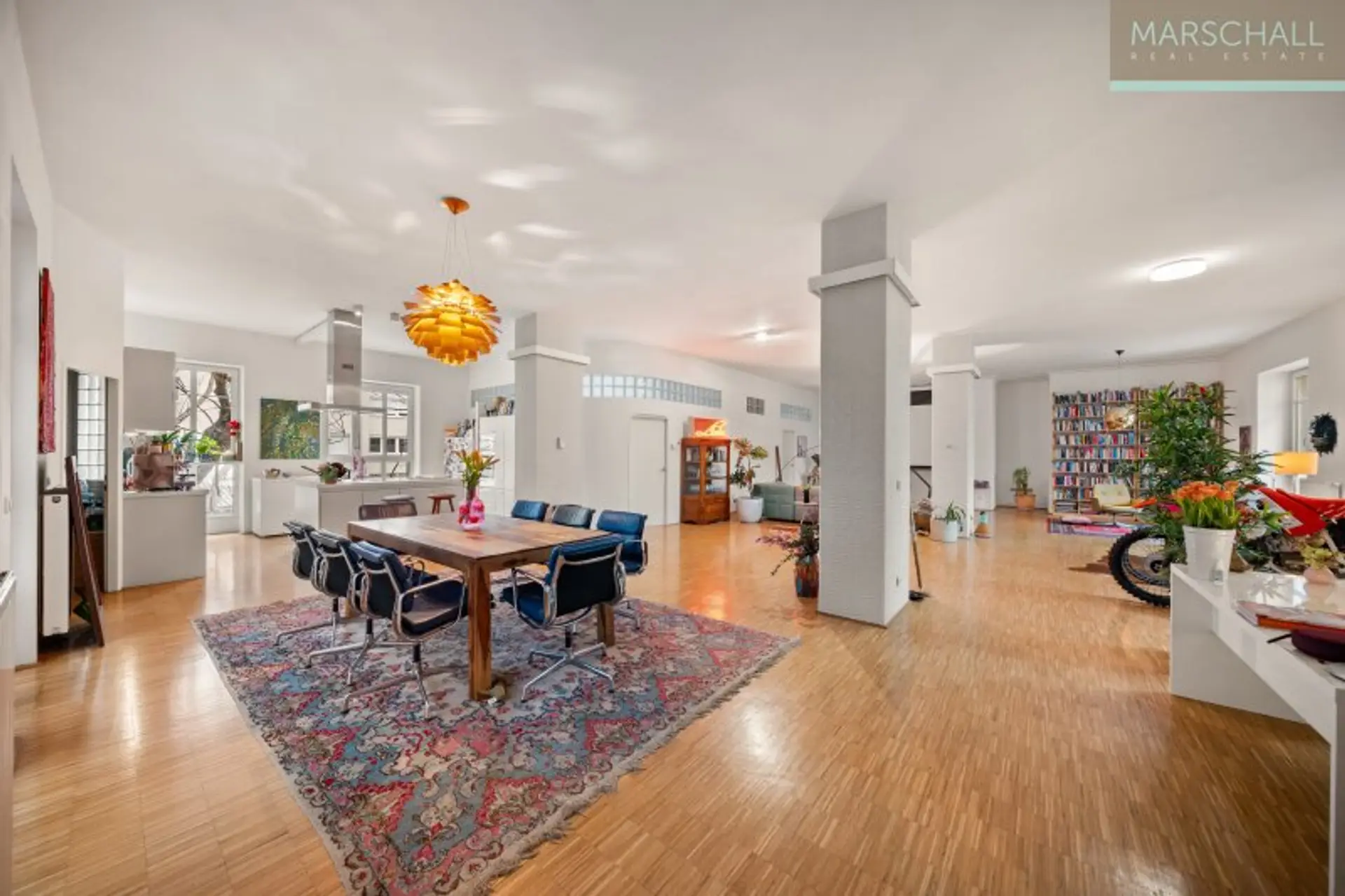 Schon beim Betreten der Wohnung eröffnet sich das beeindruckende Ausmaß des rund 140 m² großen Wohnbereichs mit offener, großzügiger Küche. Die weitläufige Gestaltung sowie die zahlreichen Fensterflächen sorgen für eine helle, lichtdurchflutete Wohnatmosphäre. Das Loft verfügt zudem über zwei weitere Schlafzimmer mit jeweils ca. 16 m², die vielseitig nutzbar sind. Insgesamt stehen zwei Badezimmer zur Verfügung: eines mit Badewanne sowie ein weiteres, das direkt von einem Schlafzimmer aus zugänglich ist und über einen eigenen Schrankraum verfügt. An die Küche anschließend haben Sie Zugang zu einen ruhigen, begrünten Gemeinschaftsgarten – ein wunderbarer Ort zum Entspannen. Ein besonderes Highlight erwartet Sie am Dach des Hauses: ein gemeinschaftlicher Pool, ideal für erfrischende Momente an heißen Sommertagen.