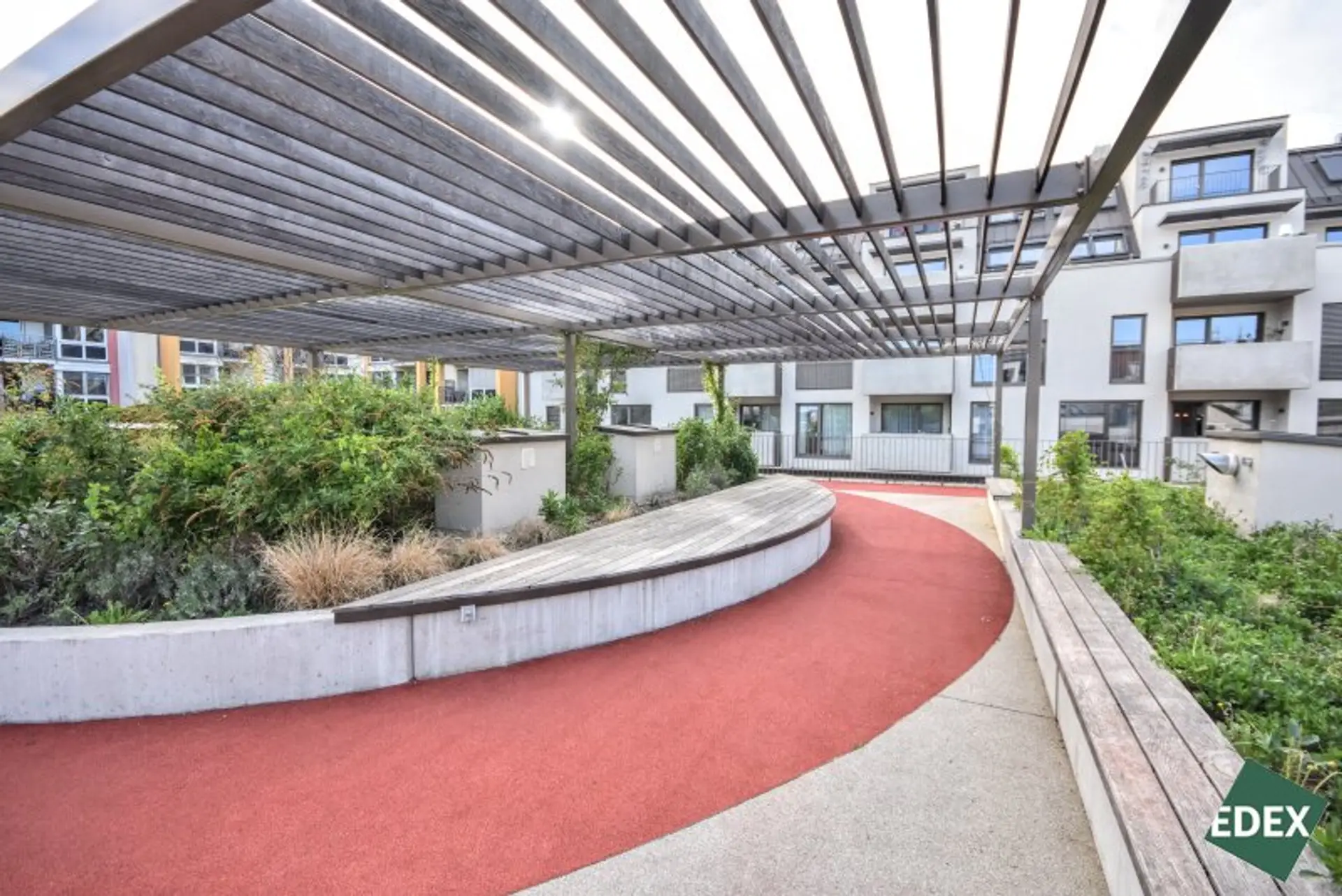 Gemeinschaftsdachterrasse mit Laufbahn & Tiefgarage im Haus