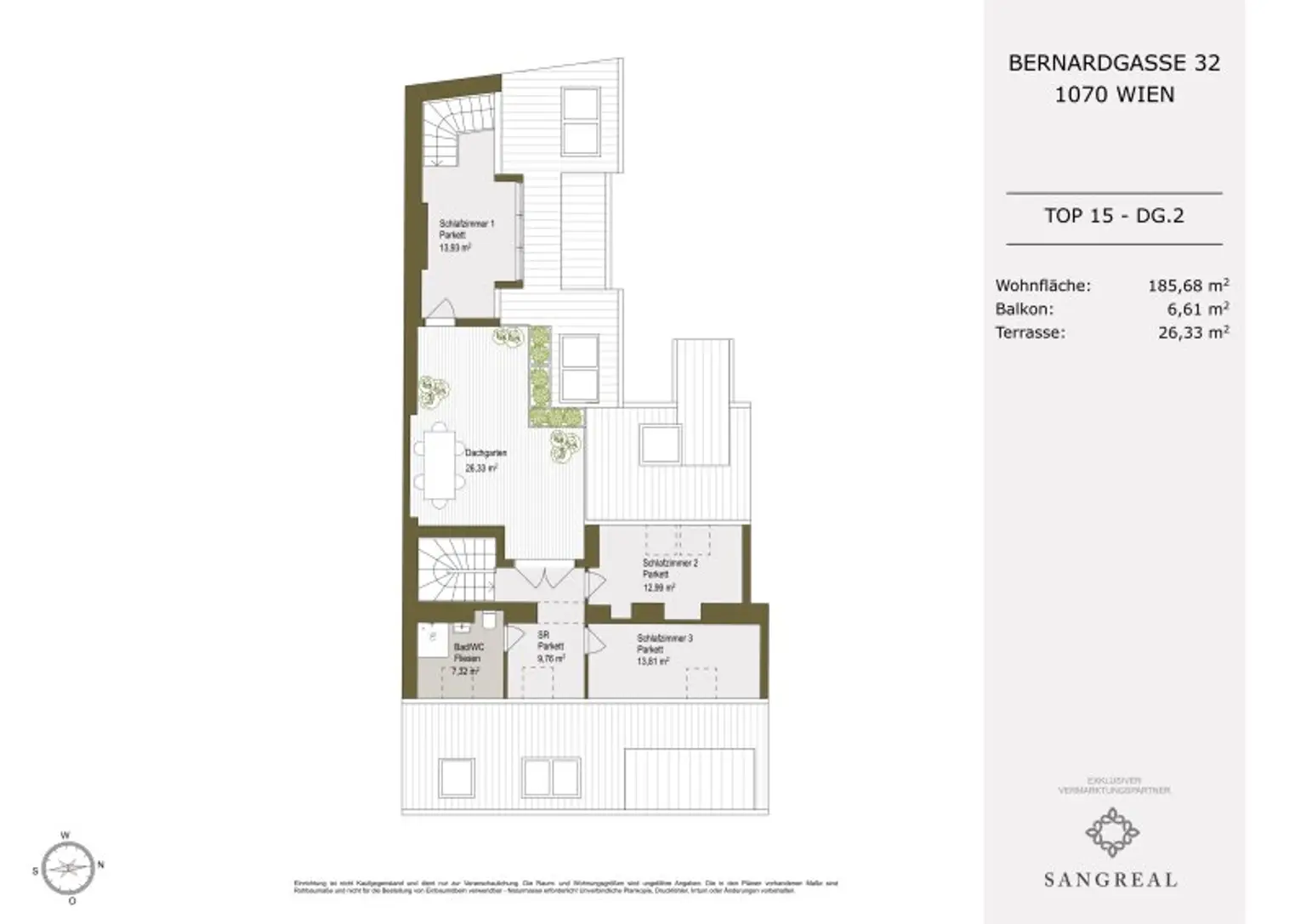 Der Grundrissplan wird gerne auf Anfrage separat versendet. Für weitere Detailfragen oder einen Besichtigungstermin steht Ihnen Frau Julia Trimmel von Sangreal jederzeit gerne unter +43 664 149 34 51 [tel:+436641493451] oder trimmel@sangreal.at zur Verfügung!