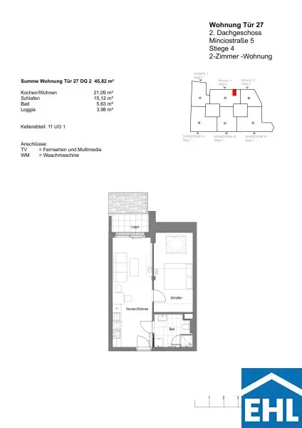 Zudem ist jeder Wohneinheit ein eigenes Kellerabteil zugeordnet und es besteht die Möglichkeit zur Anmietung eines Tiefgaragenstellplatzes in der hauseigenen Garage.