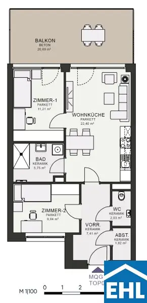 * Wohneinheiten: 571 Mietwohnungen (ca. 35–97 m²)