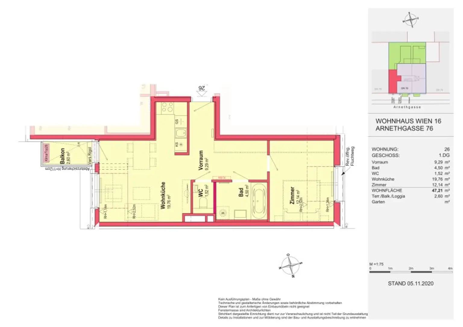 In einer ruhigen Seitengasse der Arnethgasse 76, 1160 Wien, befindet sich diese attraktive 2-Zimmer-Wohnung in einem modernen Neubau. Mit einer Wohnfläche von ca. 47,21 m² bietet sie ein durchdachtes Raumkonzept.