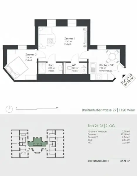 Die Liegenschaft befindet sich in der Breitenfurter Straße 29 in hervorragender Wohnlage. Der Bahnhof Wien Meidling sowie der Schedifkaplatz sind in nur wenigen Gehminuten erreichbar.