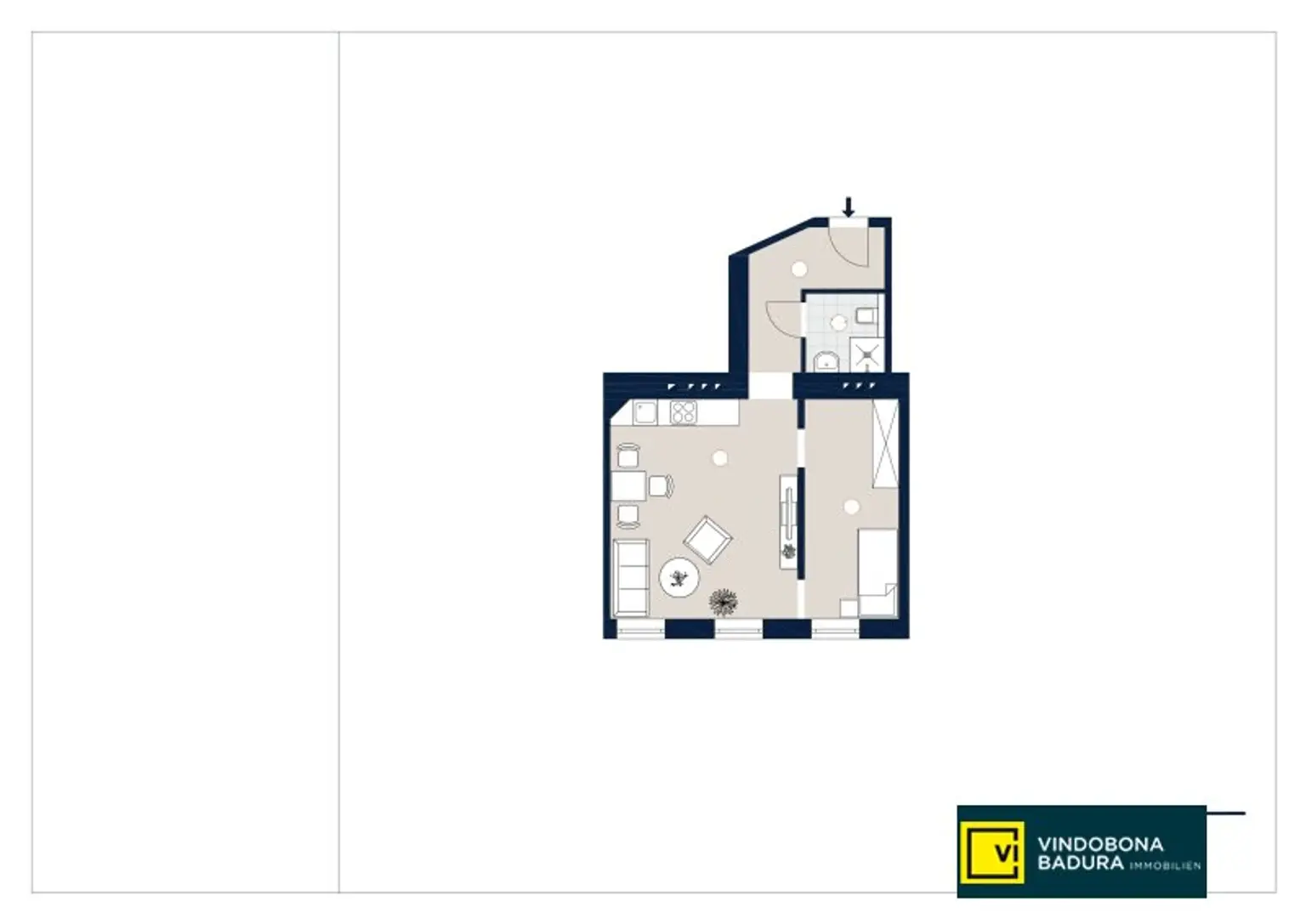 Auf rund 42 m² Wohnfläche im 2. Liftstock erwartet Sie ein durchdachter Grundriss mit Vorraum, separatem WC, modernem Badezimmer, ruhigem Schlafzimmer sowie einer Wohnküche.