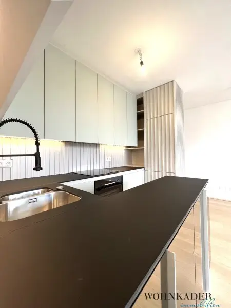 Die Wohnung präsentiert sich mit einer durchdachten Raumaufteilung, die modernen Wohnkomfort mit praktischer Funktionalität vereint. Die Wohnküche mit einer brandneuen Einbauküche und hochwertigen Geräten bildet den Mittelpunkt des Geschehens. Ein Schlafzimmer mit großzügigem Einbauschrank, ein stilvolles Bad mit Dusche und Waschbecken, sowie ein zusätzlicher Abstellraum runden das Wohnangebot ab.