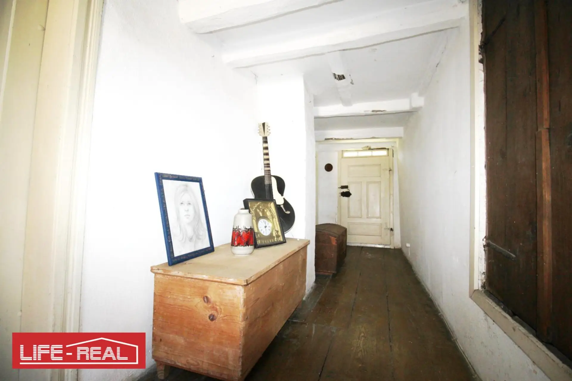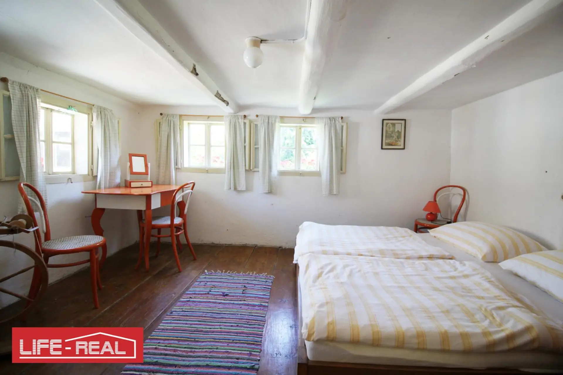 Im Obergeschoss befinden sich zwei Schlafzimmer sowie ein großer Dachboden mit viel Ausbaupotenzial – ideal, um zusätzlichen Wohnraum oder ein Atelier zu schaffen.