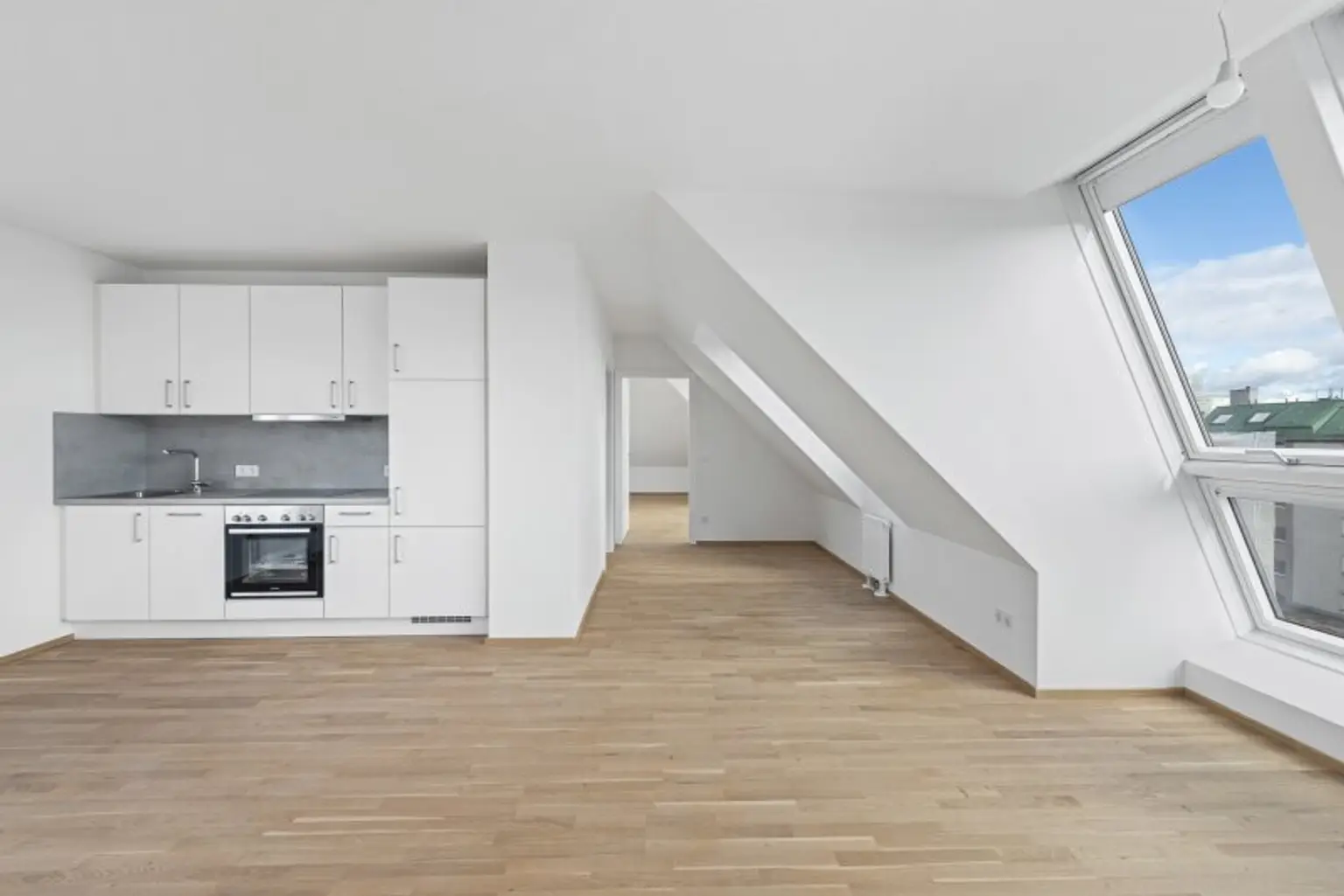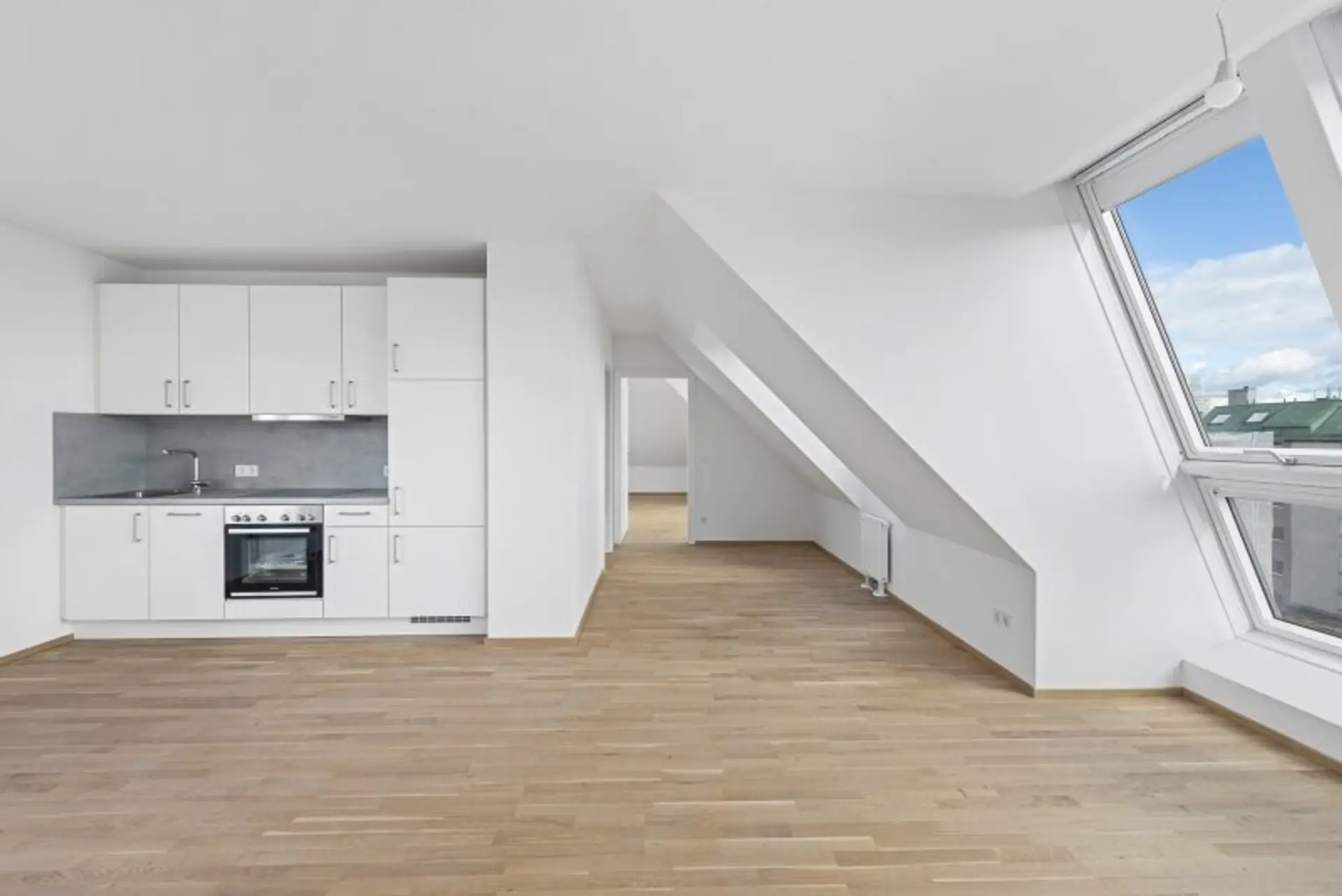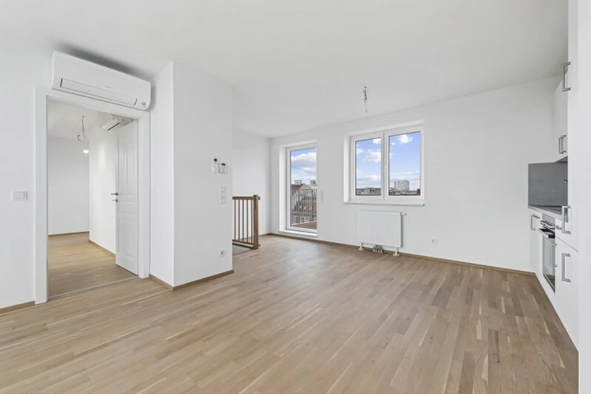 Im Inneren erwarten Sie schlüsselfertige Wohnungen, die mit attraktivem Eichenparkett, stilvoll verfliesten Bädern und vollausgestatteten Küchen ausgestattet sind. Die Dachgeschosswohnungen verfügen zusätzlich über Klimaanlagen der Premium-Marke Daikin, die auch an heißen Sommertagen für ein behagliches Wohnklima sorgen. Großzügige, jeweils den Wohnungen zugeordnete, Kellerabteile runden das Angebot ab.
