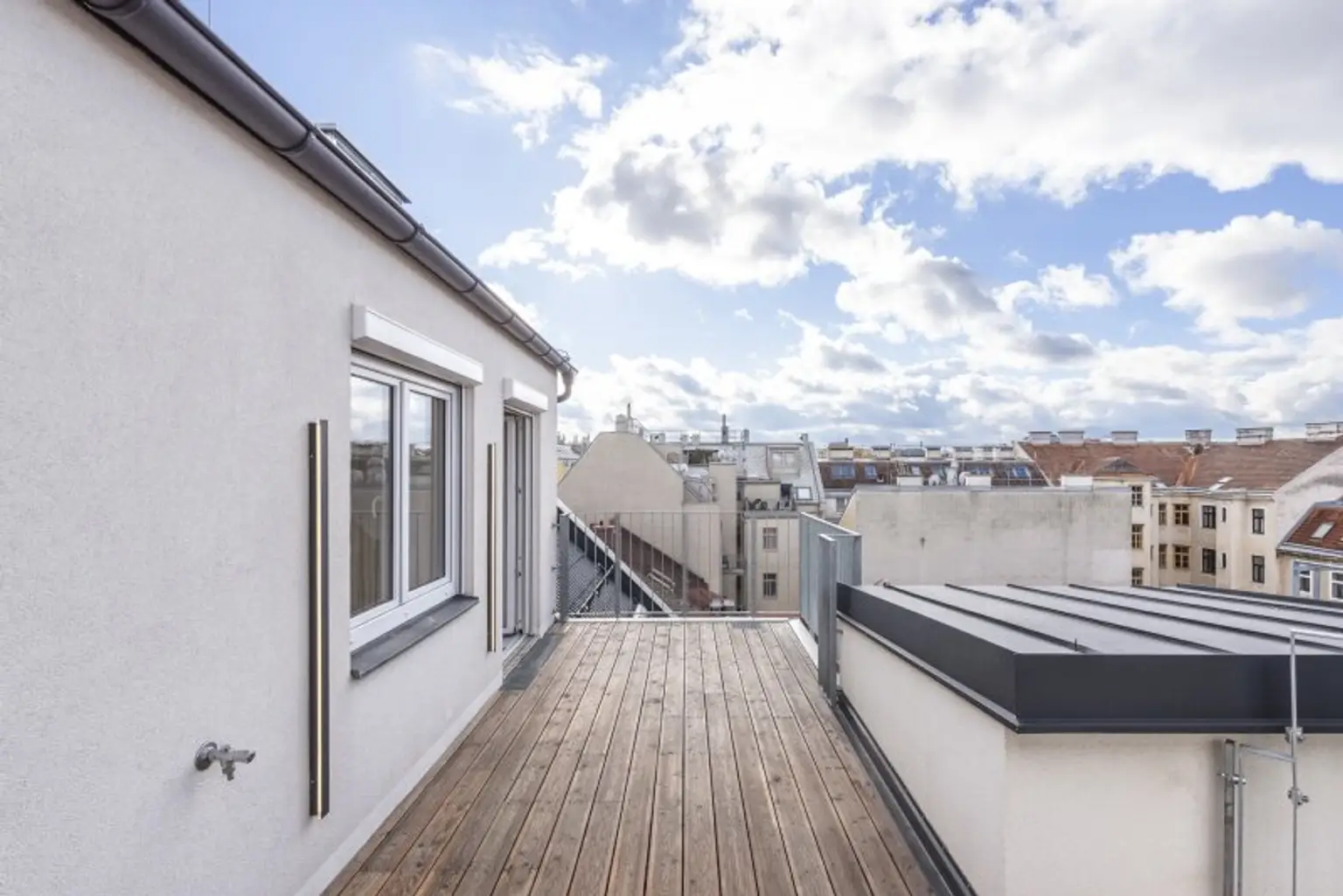 Das Gebäude wurde einer umfassenden Generalsanierung unterzogen: zwei neue Dachgeschosse, ein Lift, erneuerte Fenster, eine sanierte Fassade und ausgewählte Materialien formen ein harmonisches Gesamtbild, das den Charme des Altbaus respektvoll in die Gegenwart holt.