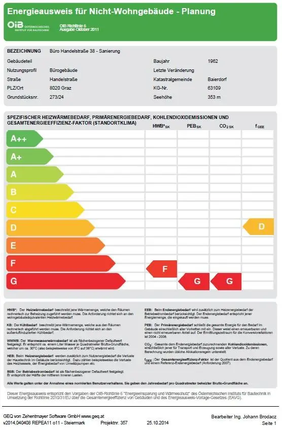 | Klasse Heizwärmebedarf: |
