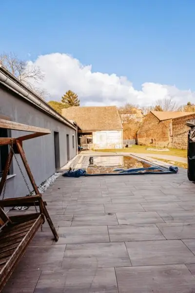Überlauf- Swimmingpool, gemauerter Stadel, Schuppen, Erdkeller,