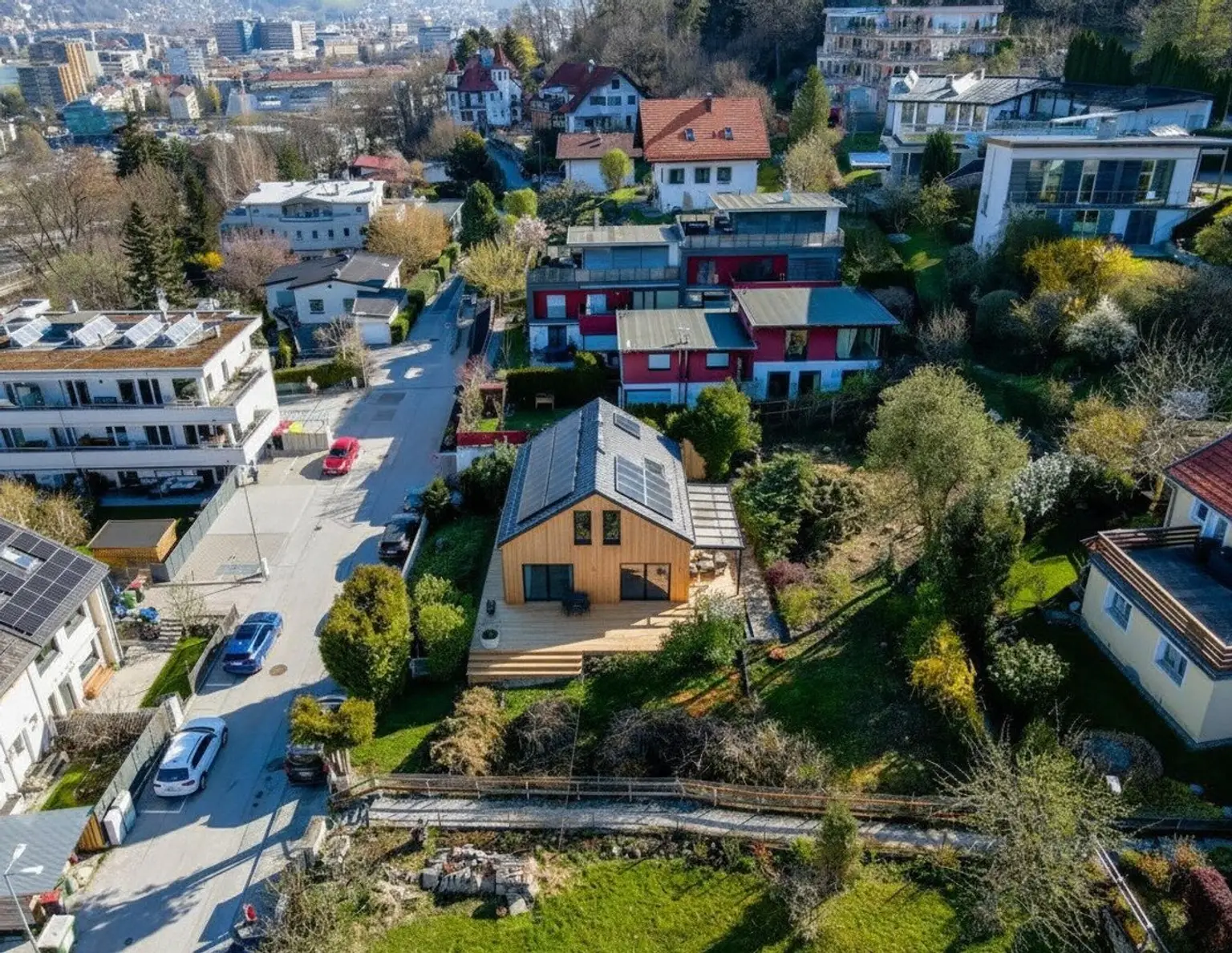 Der Stadtteil bietet eine idyllische Lage mit einer atemberaubenden Aussicht auf die Stadt und die umliegenden Berge, was ihn zu einem beliebten Wohnort für Naturliebhaber und Pendler macht. Mit einer großzügigen Fläch…