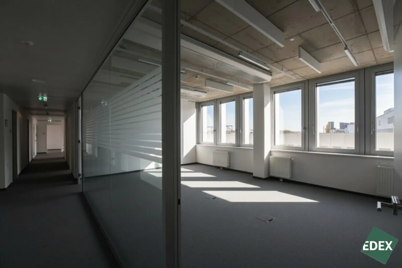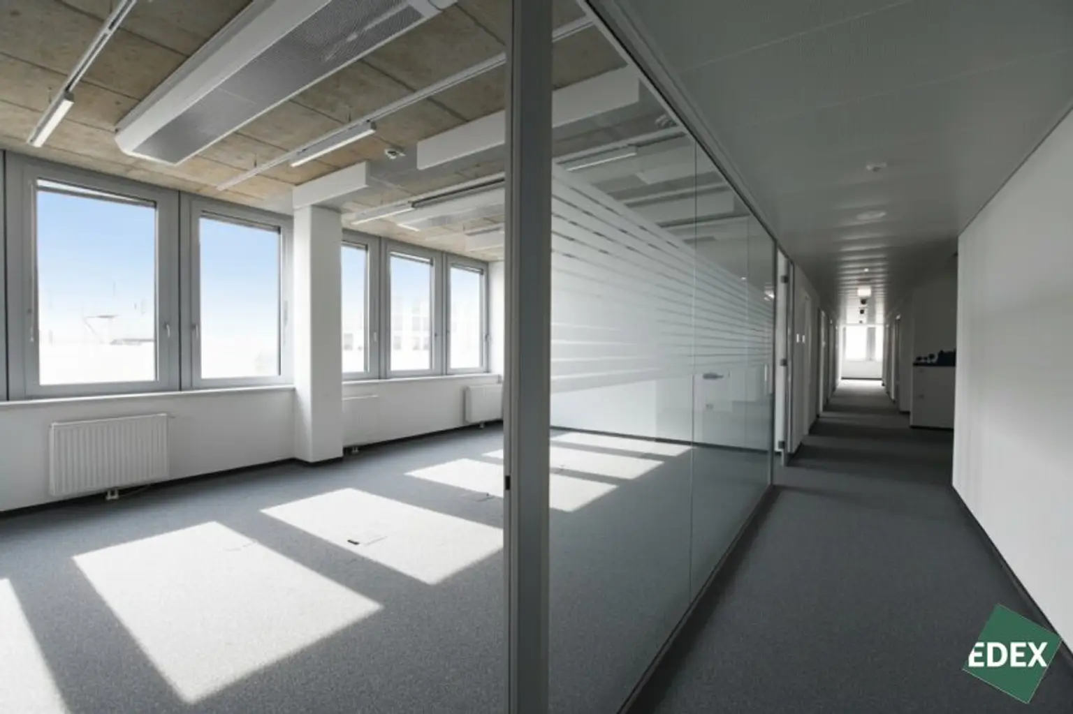 Durch die beidseitig durchgehend verglasten Gebäudetrakte mit einem Ausbauraster von nur 1,25 m, bieten die Büroflächen im ViE höchste Effizienz und eine fast grenzenlose Flexibilität zur Realisierung des für Ihr Unternehmen maßgeschneiderten Bürokonzepts. Kühlbalken mit Frischluftanschluss und Bodendosen jeweils in jeder zweiten Achse, eine leistungsfähige Belüftungsanlage mit Wärmerückgewinnungssystem sowie ein windunabhängiger integrierter Sonnenschutz sorgen für die größtmögliche Anpassungsfähigkeit und ein optimales Raumklima.