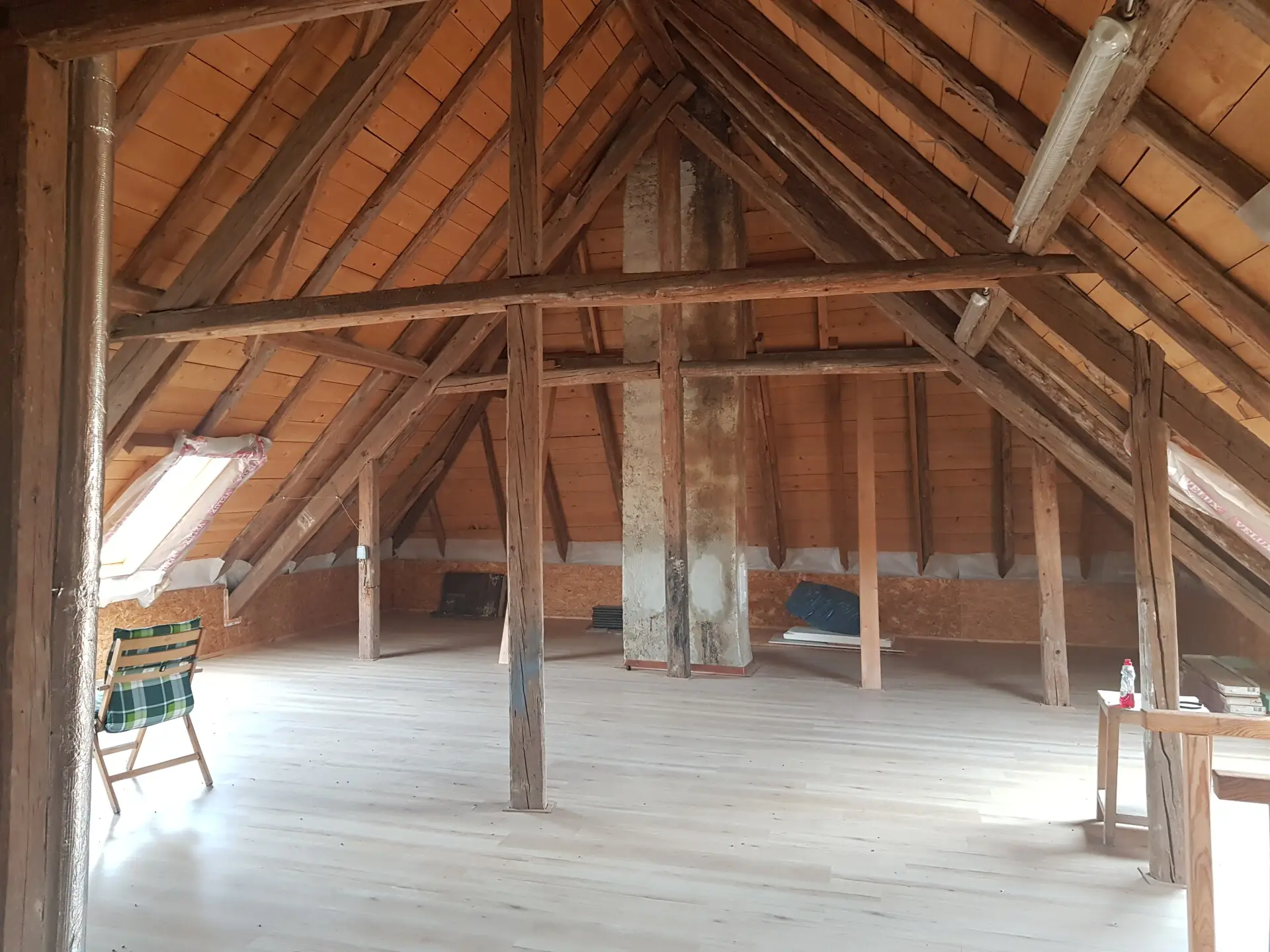 Über eine Dachbodentreppe ist der imposante Dachboden erreichbar, welcher durchaus als Atelier oder großzügiger Stauraum nutzbar wäre und dahingehend möglicherweise sehr großes Potential aufweist.