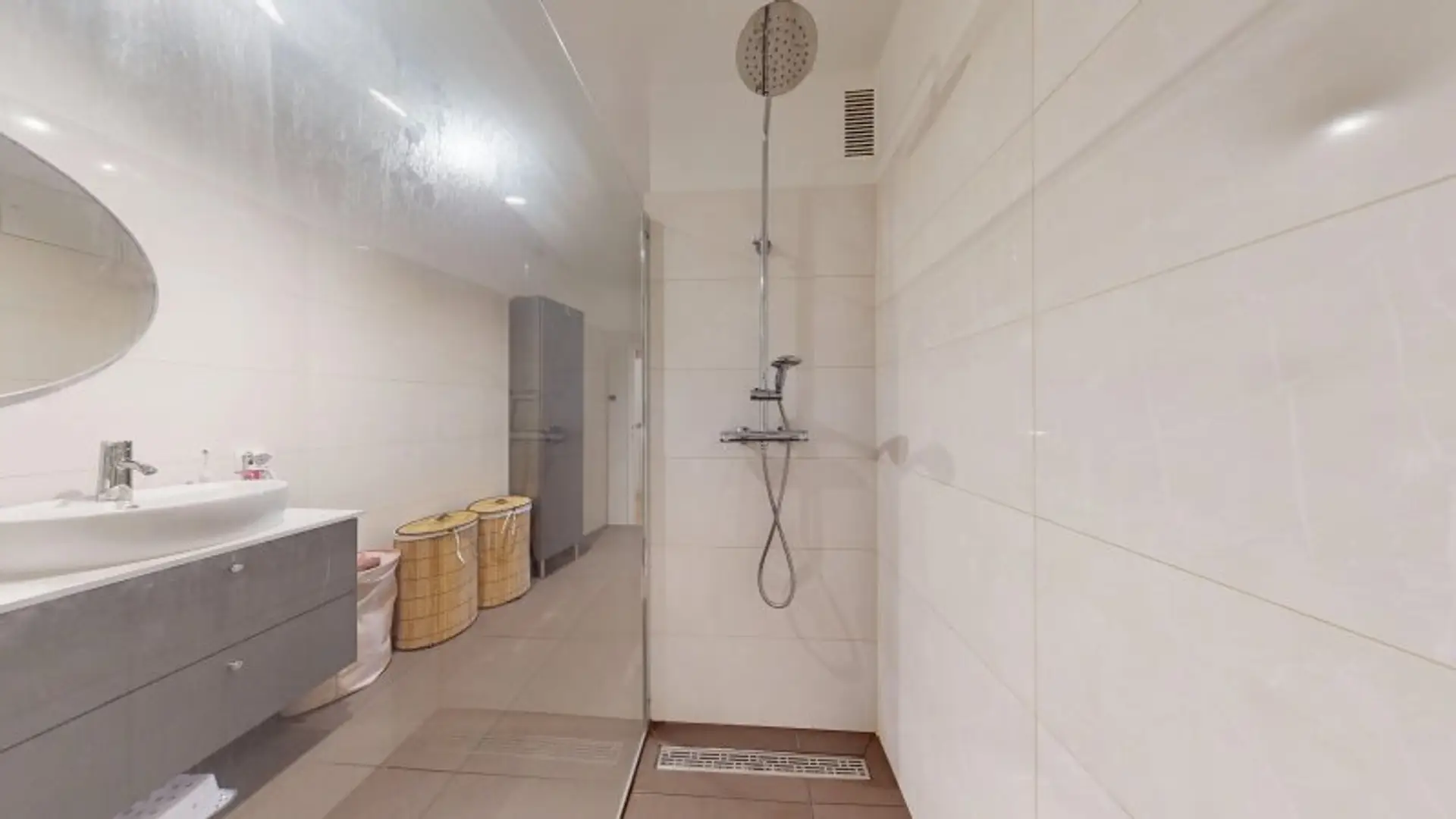 Intelligent gegliederte, separate Wohnbereiche - Hier haben Familien mit Kind großzügigen Raum. Das Zentrum der Wohnung bildet das geräumige Wohnzimmer mit offener Küche und Zugang zur verbauten Loggia. Darum herum gliedern sich separate Wohnbereiche für die Familienmitglieder, Elternschlafzimmer, Home-Office und Kinderzimmer. Zudem verfügt die Wohnung über eine separate Toilette, Bad mit Walk-in Dusche und Doppel-Handwaschbecken, Abstellraum mit Waschmaschinenanschluß sowie Vorraum und Flur.