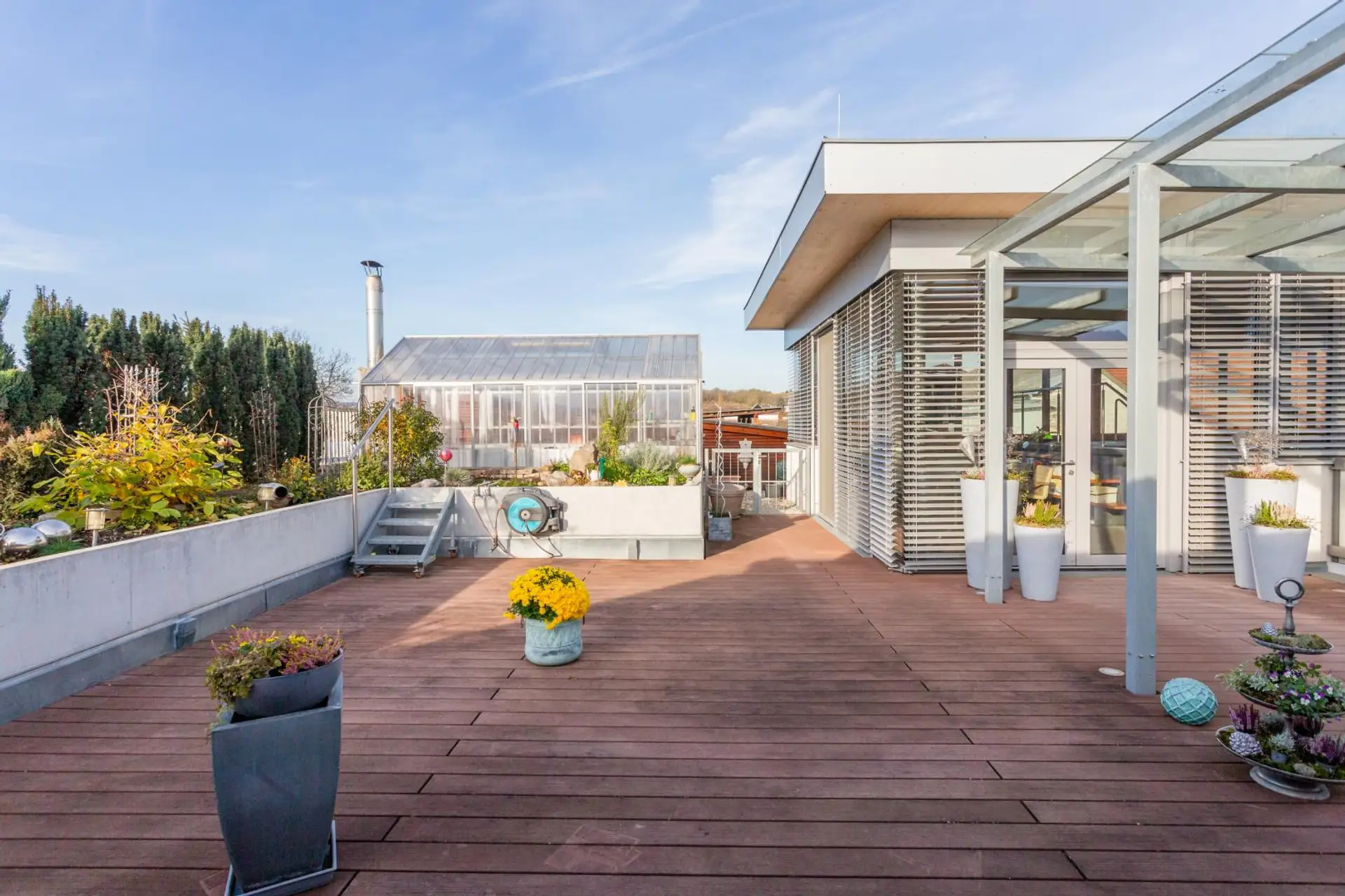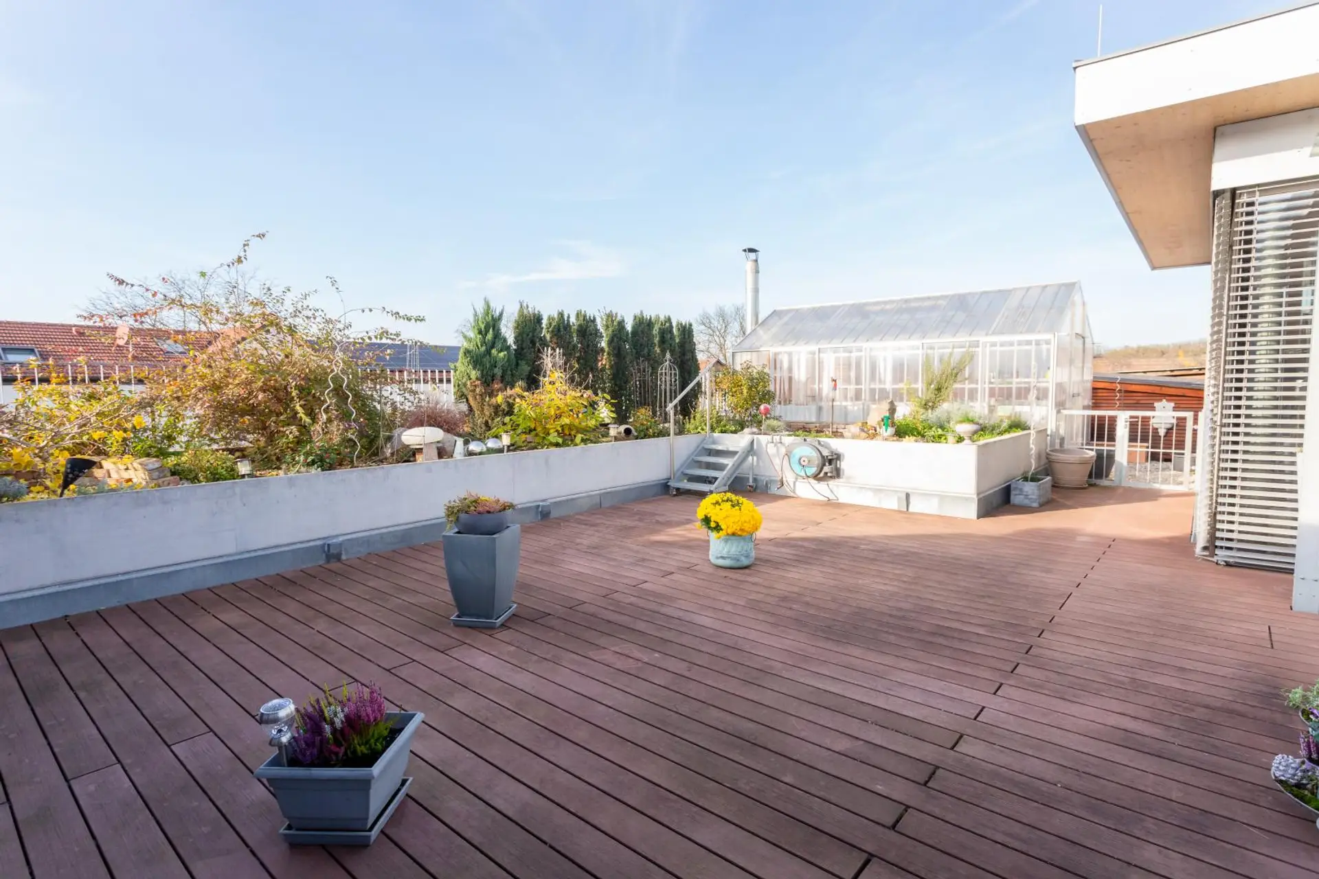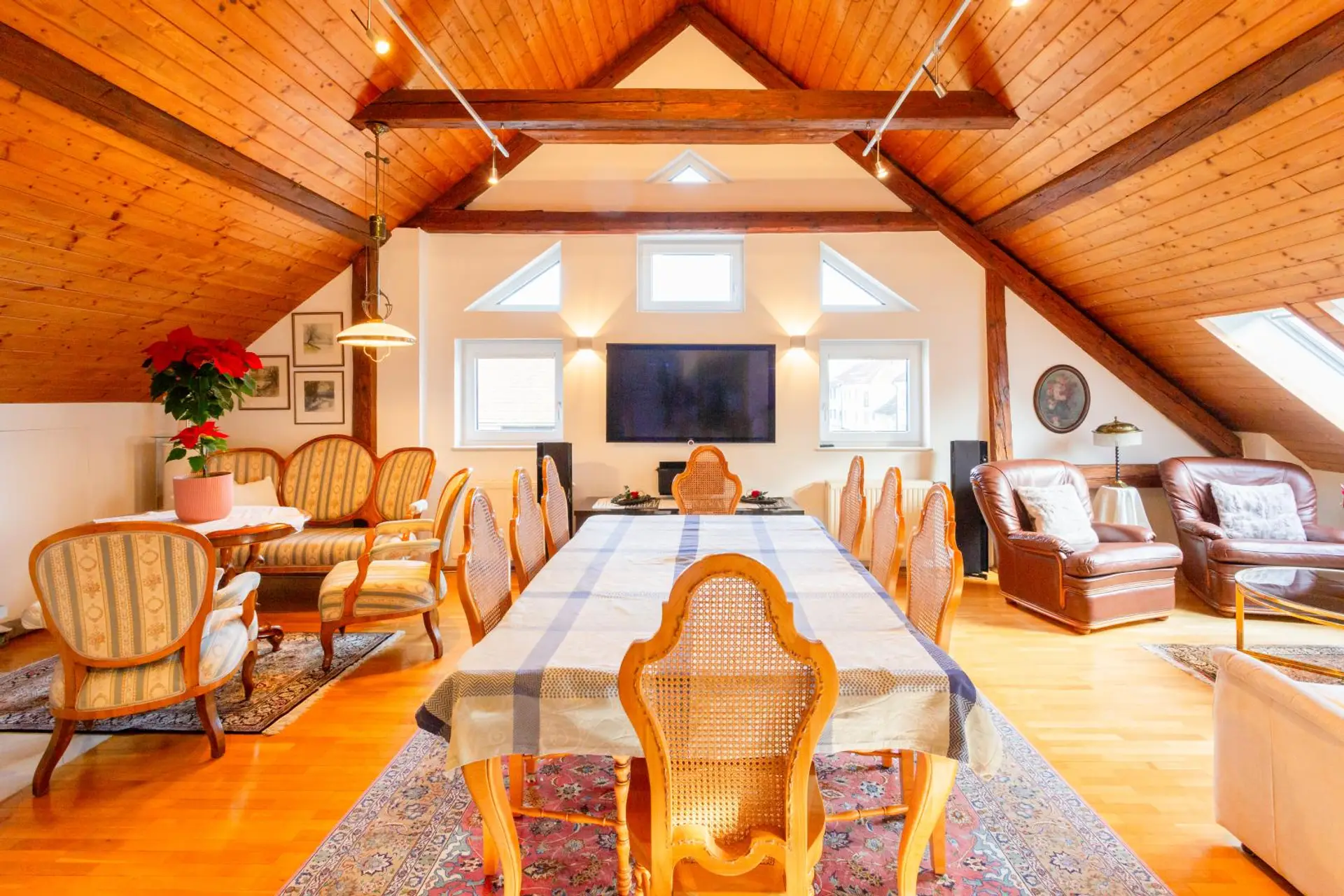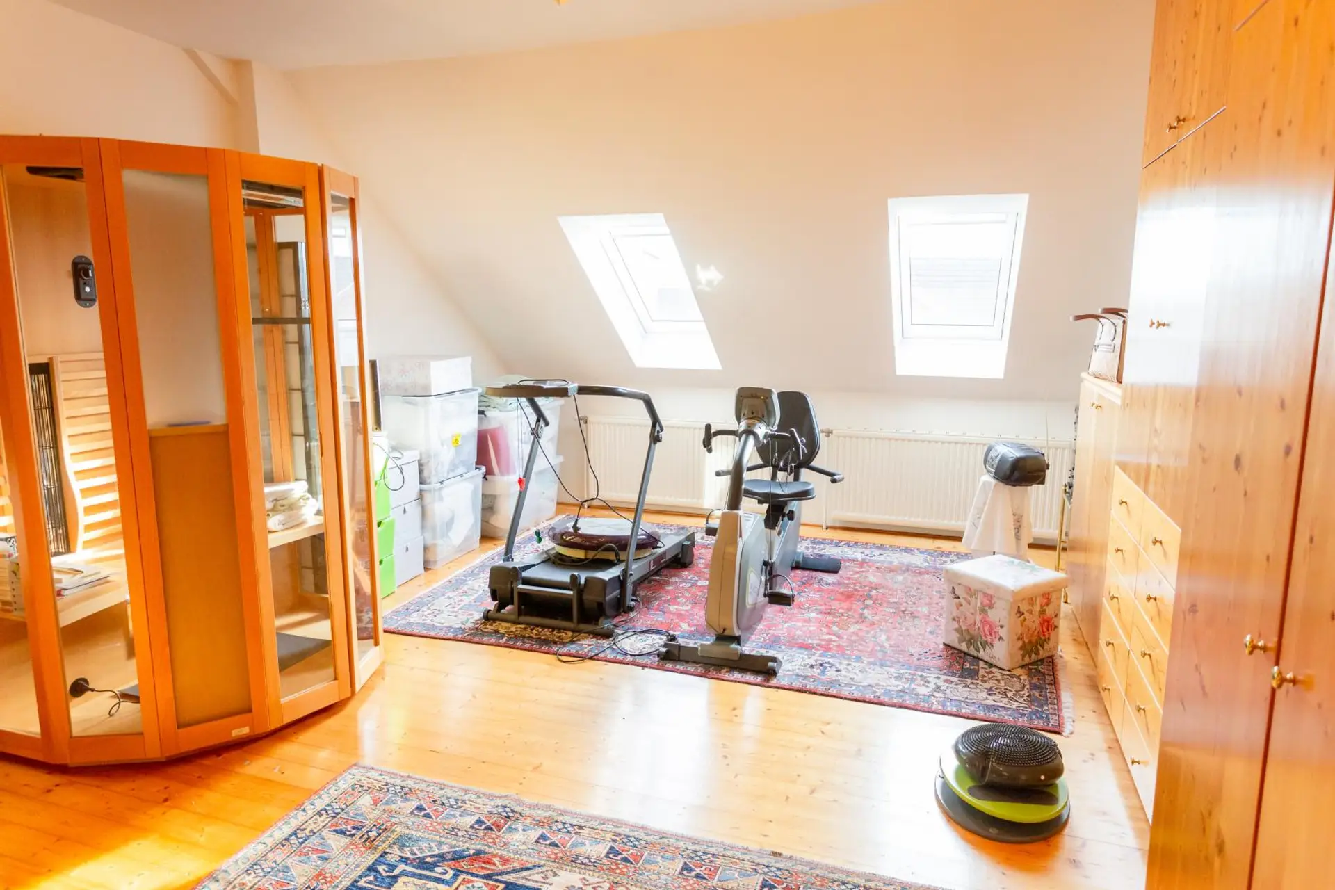 Der 1990 errichtete Dachgeschossbereich (WFL ca. 207m²) bietet modernen Wohnkomfort und folgende Räumlichkeiten: