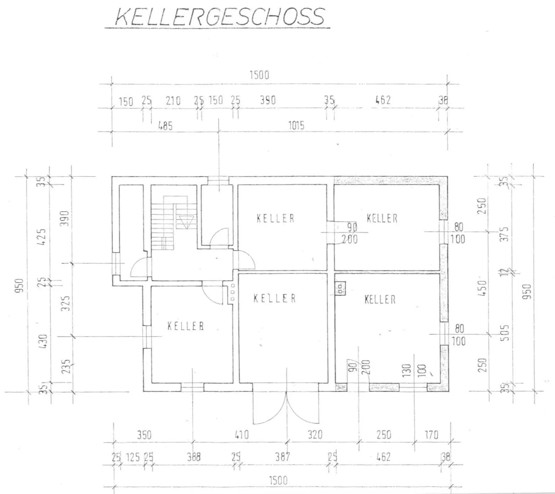 Zusätzlich steht ein großzügiger Keller mit rund 114 m² zur Verfügung, der sich ideal als Lager-, Hobby- oder Werkstattbereich nutzen lässt.