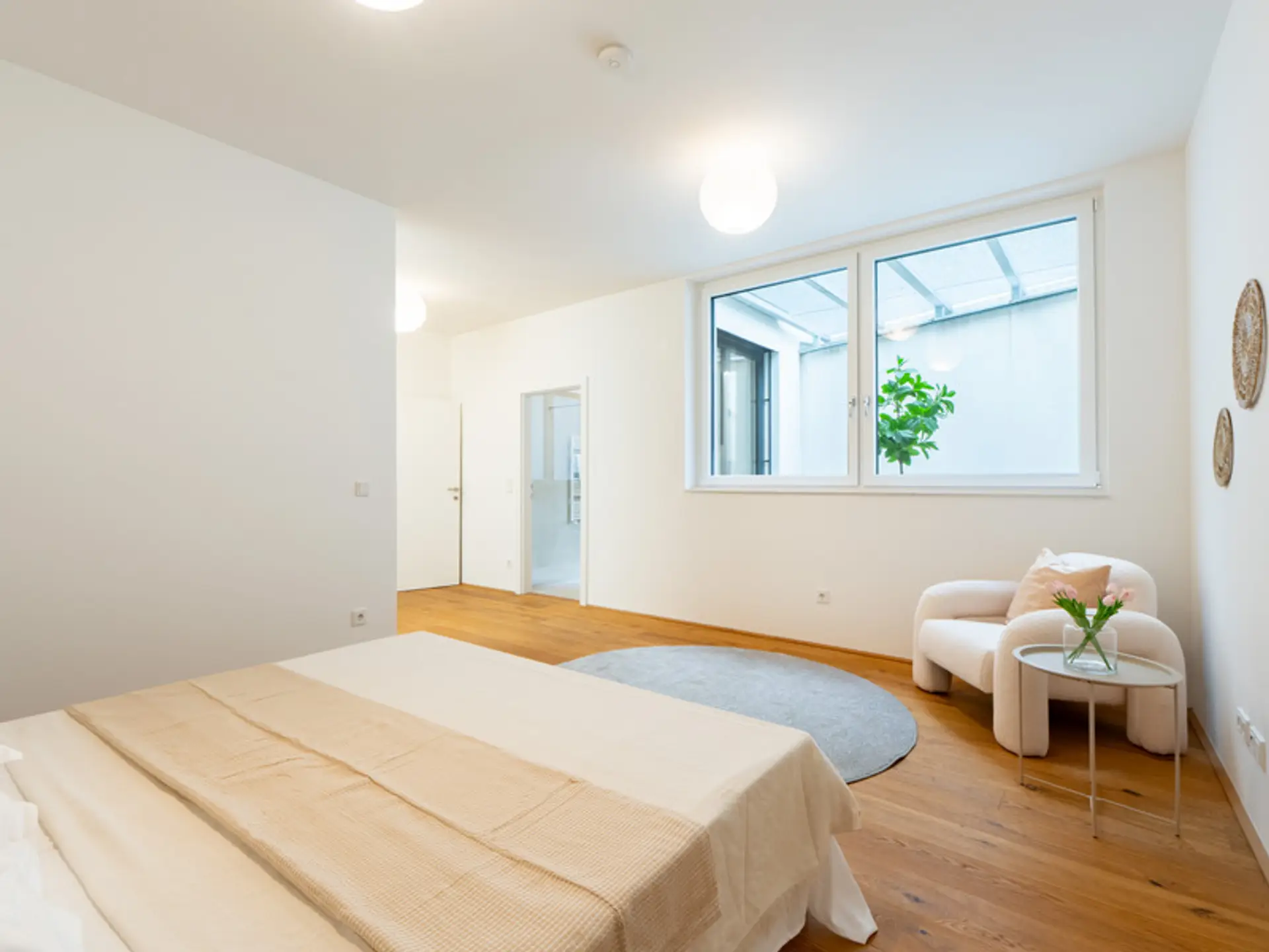 - Hochwertige Markenausstattung (Echtholzparkett, Feinsteinzeug-Fliesen, Holz-Alu-Fenster mit 3-fach Isolierverglasung, uvm.)