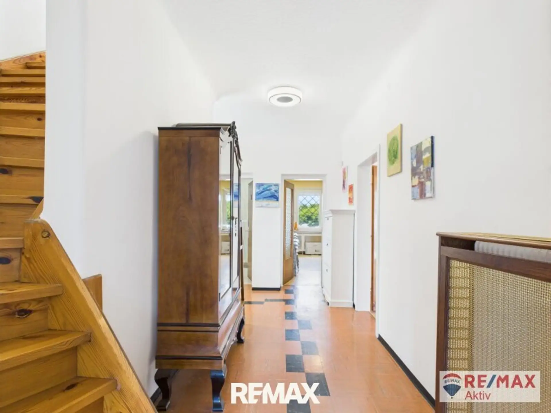 Das Obergeschoss verfügt über ein großes, helles Vorzimmer, 3 geräumige Schlafzimmer (eines davon mit Zugang zum Balkon) und ein zusätzliches WC.