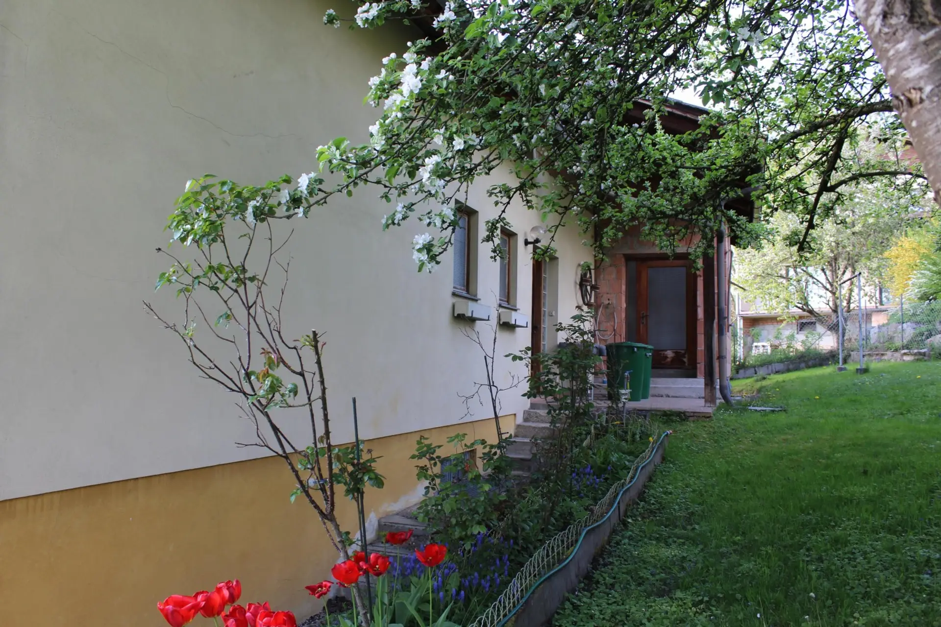 Der Anbau aus dem Jahr 1992 erweitert in jedem Geschoss die Nutzfläche. Der Neubau ist entweder durch einen eigenen Eingang oder im Haus über einen Durchgang im Stiegenhaus erreichbar.