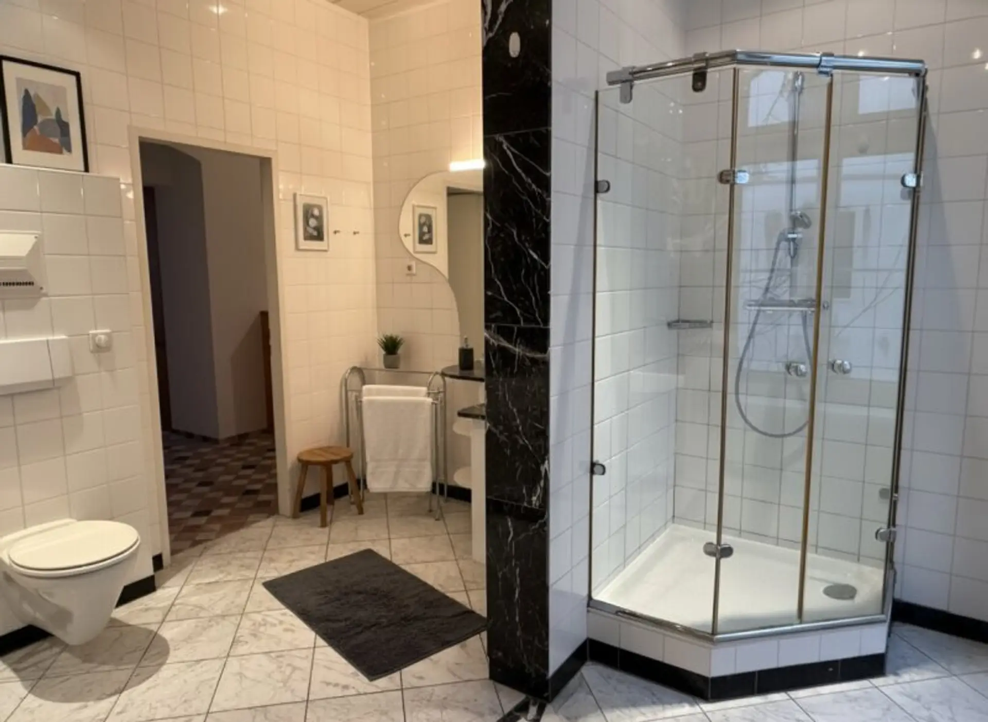 * kleines Bad mit Dusche, Handwaschbecken & WC